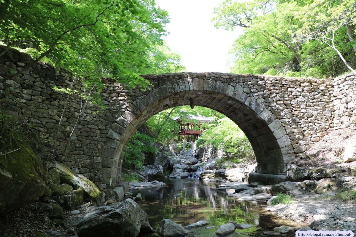 계곡의 폭이 넓어 아치(홍예) 또한 유달리 큰 편이다.