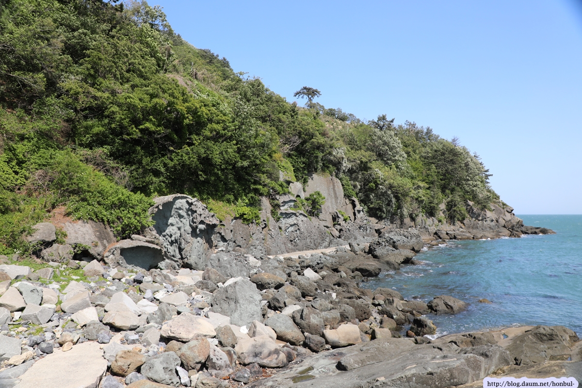 이곳까지 오는 길은 해안가 꾸불꾸불한 길을 돌고 돌아 금오산이 시작되는 율치 주차장을 지나야 한다.