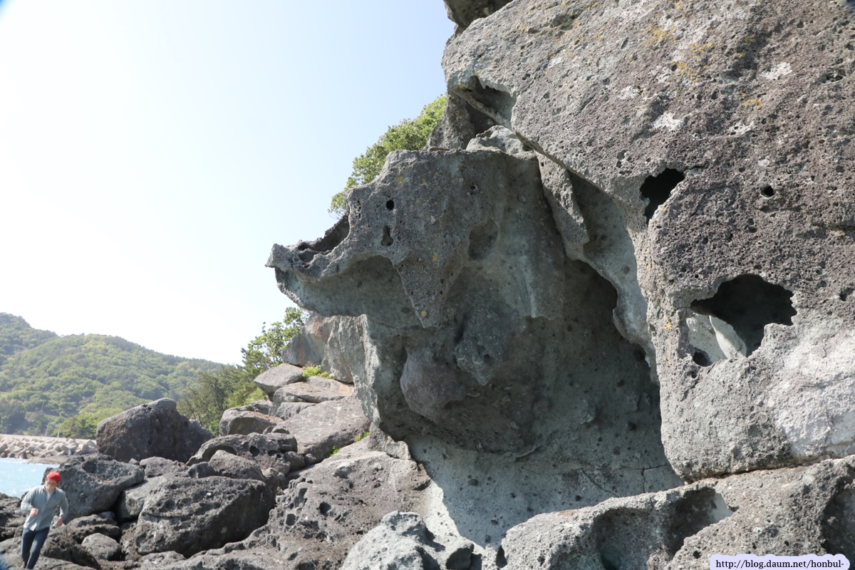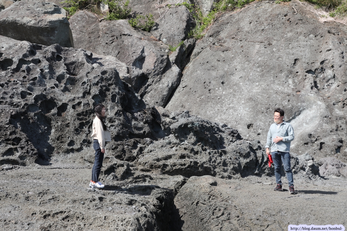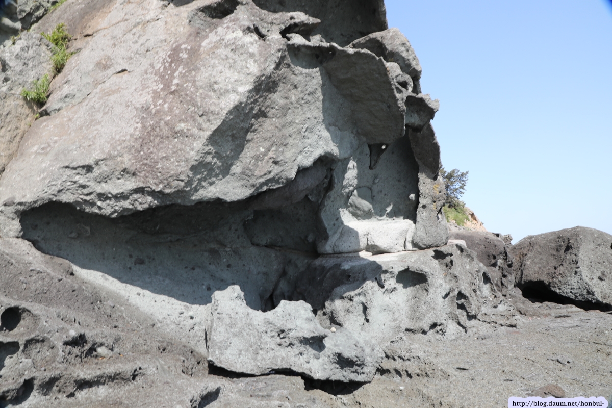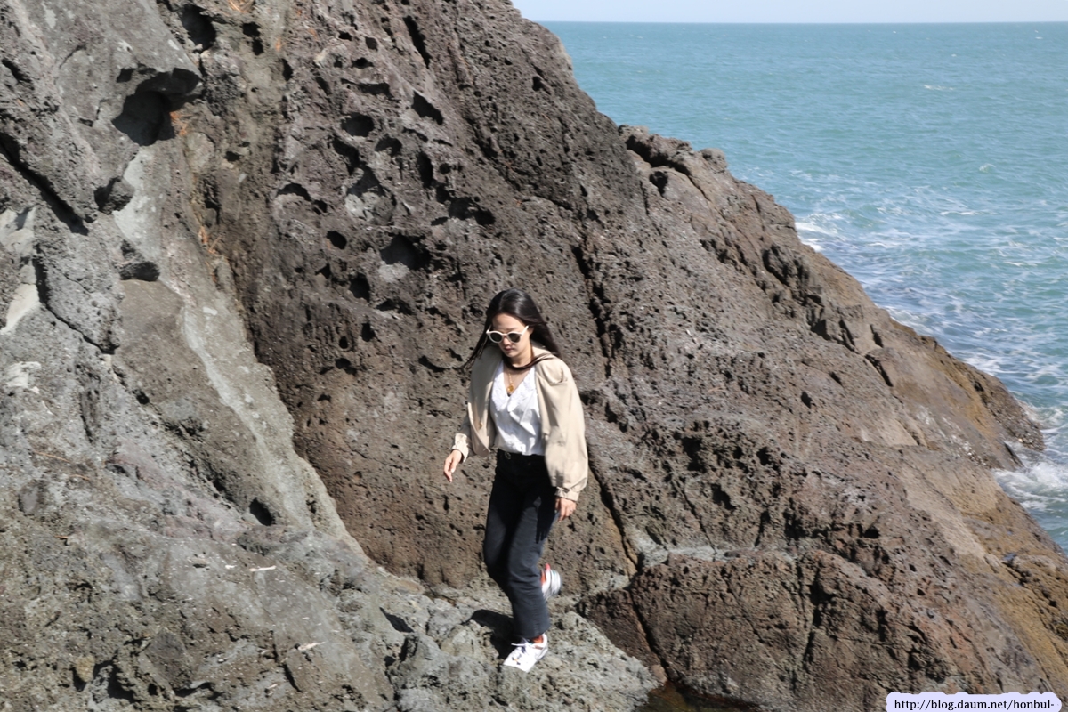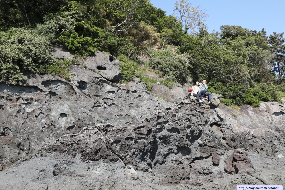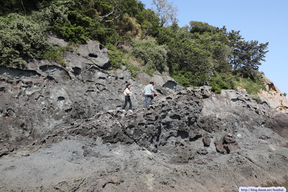 즐풍은 아는 성두마을의 이 해안은 사람이 다니지 않아 원시상태의 꺼끌꺼끌한 표면을 그대로 갖고 있다.