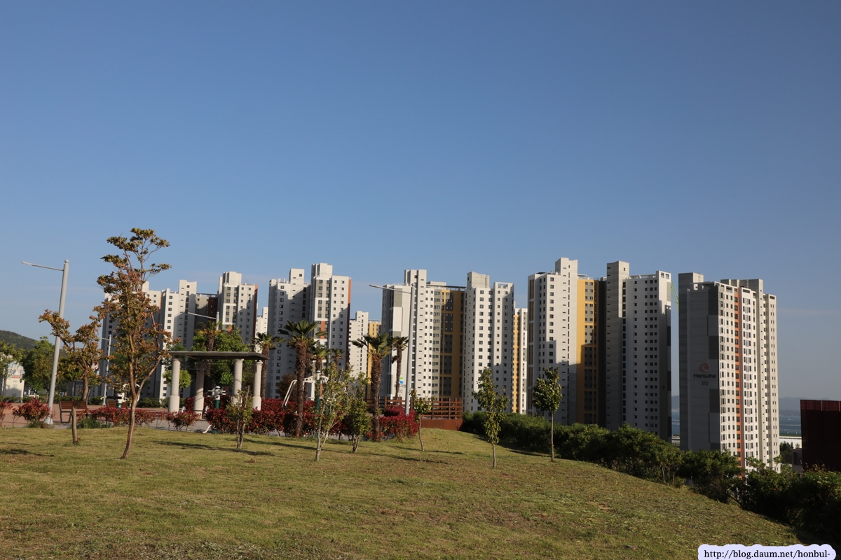 공원 주변에 바다를 끼고 대단지의 아파트와 상업시설이 들어섰고, 지금도 여전히 공사중이다.