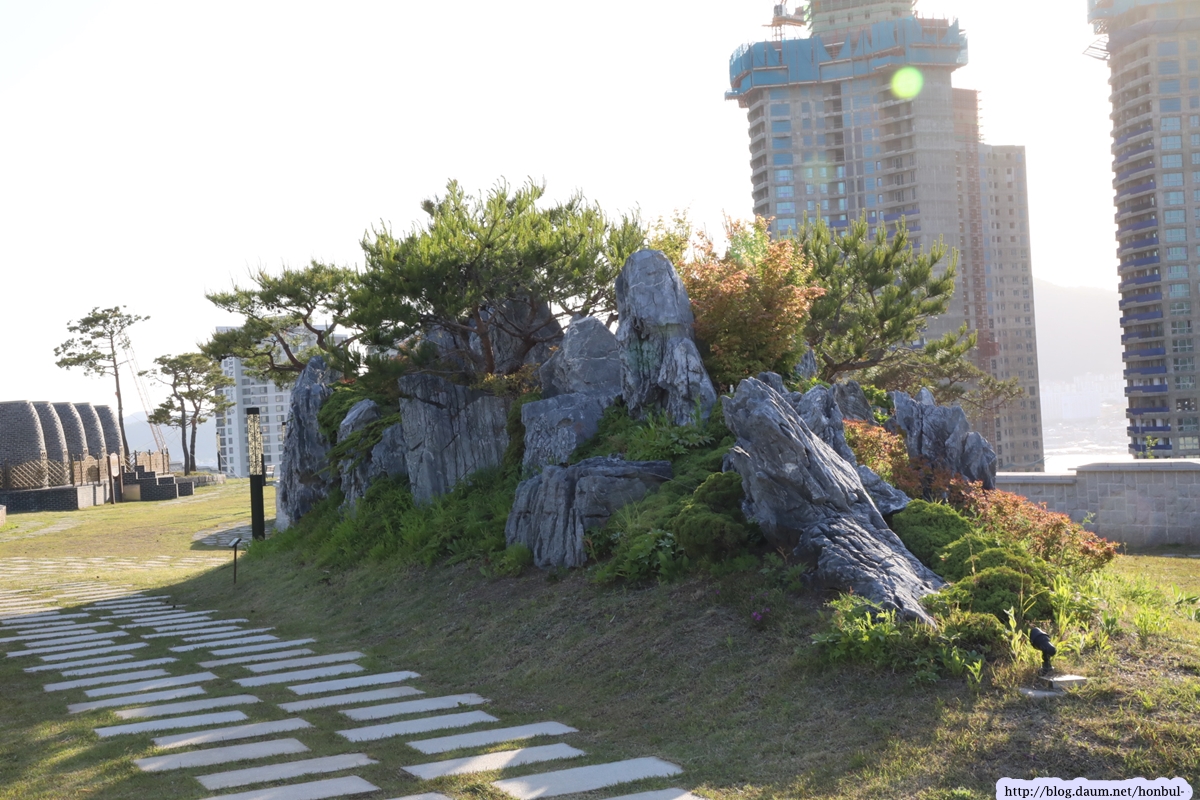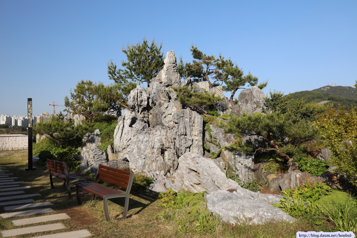 이곳은 바위산 정상인데, 이곳을 개발하며 나온 돌로 보기 좋게 꾸민 곳이다.