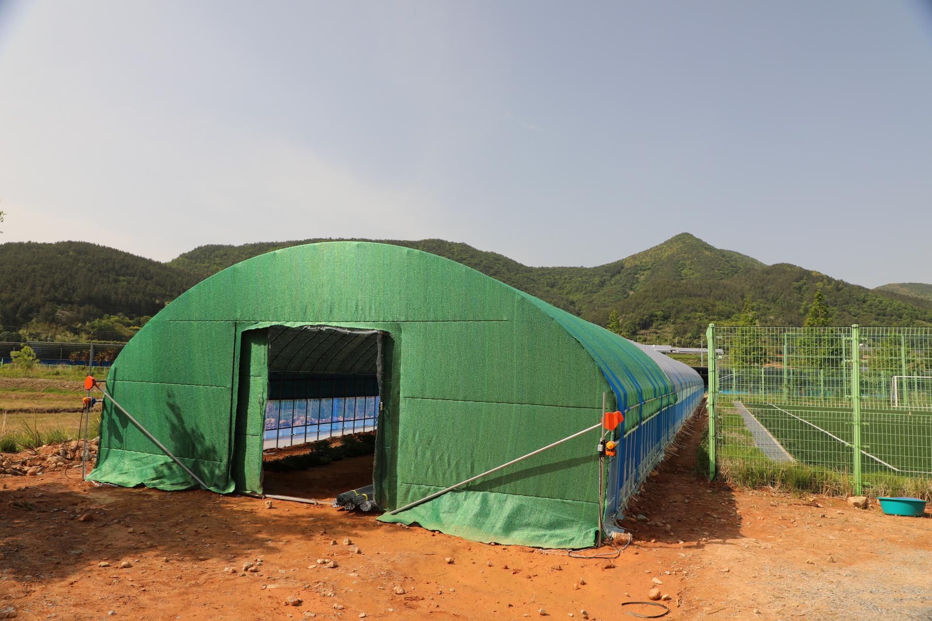며칠 전에 센터 뒤 농지에 비닐하우스를 설치했다.