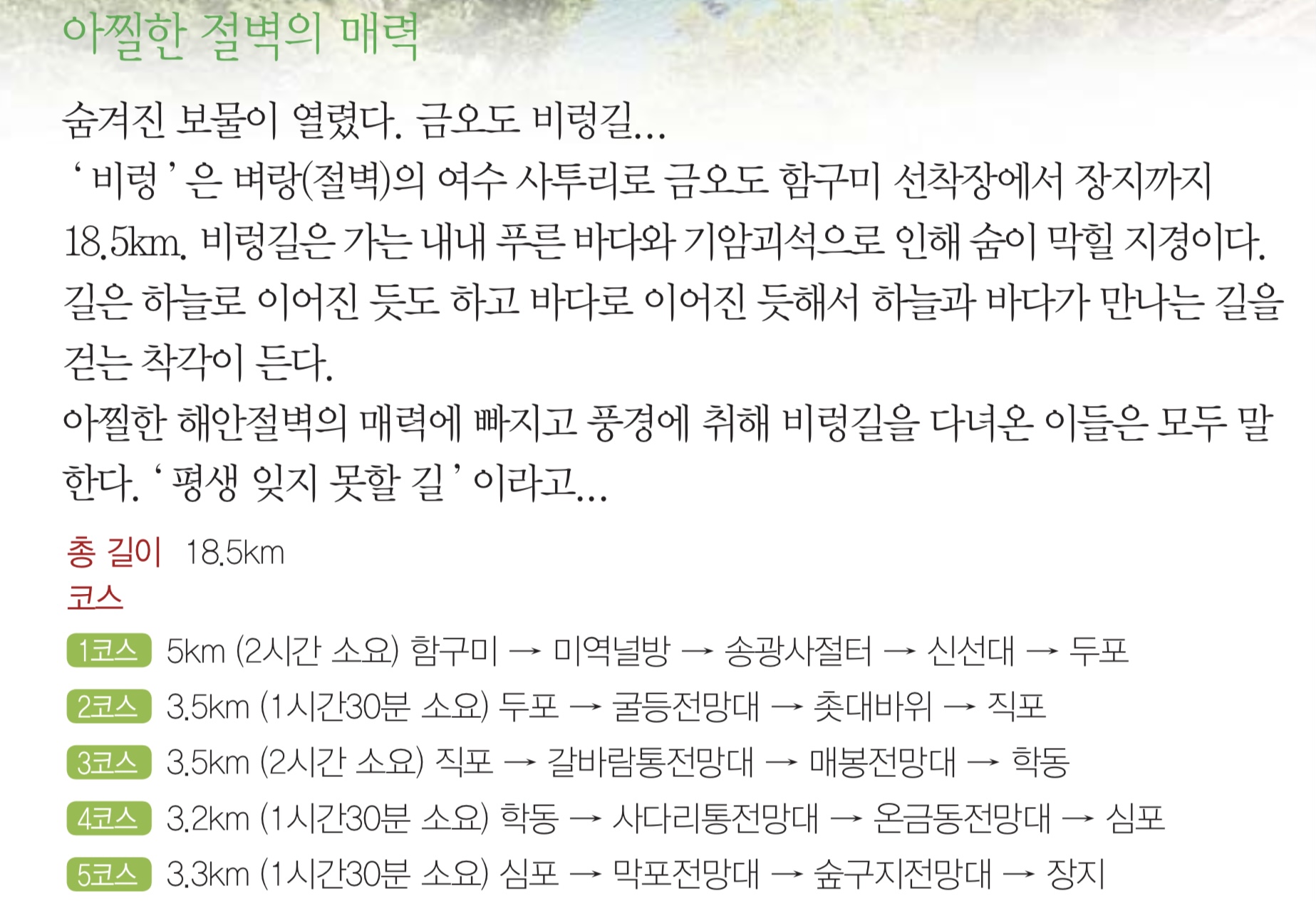 금오도 비렁길 5, 4, 3코스 탐방코스