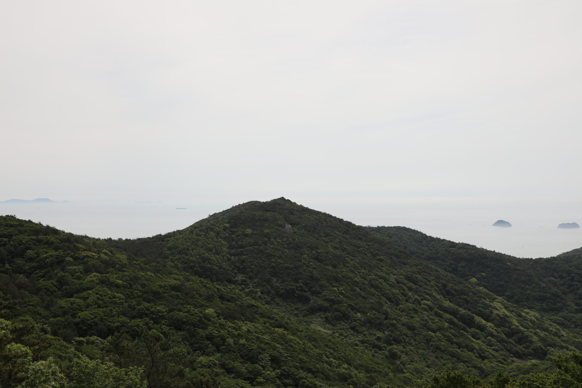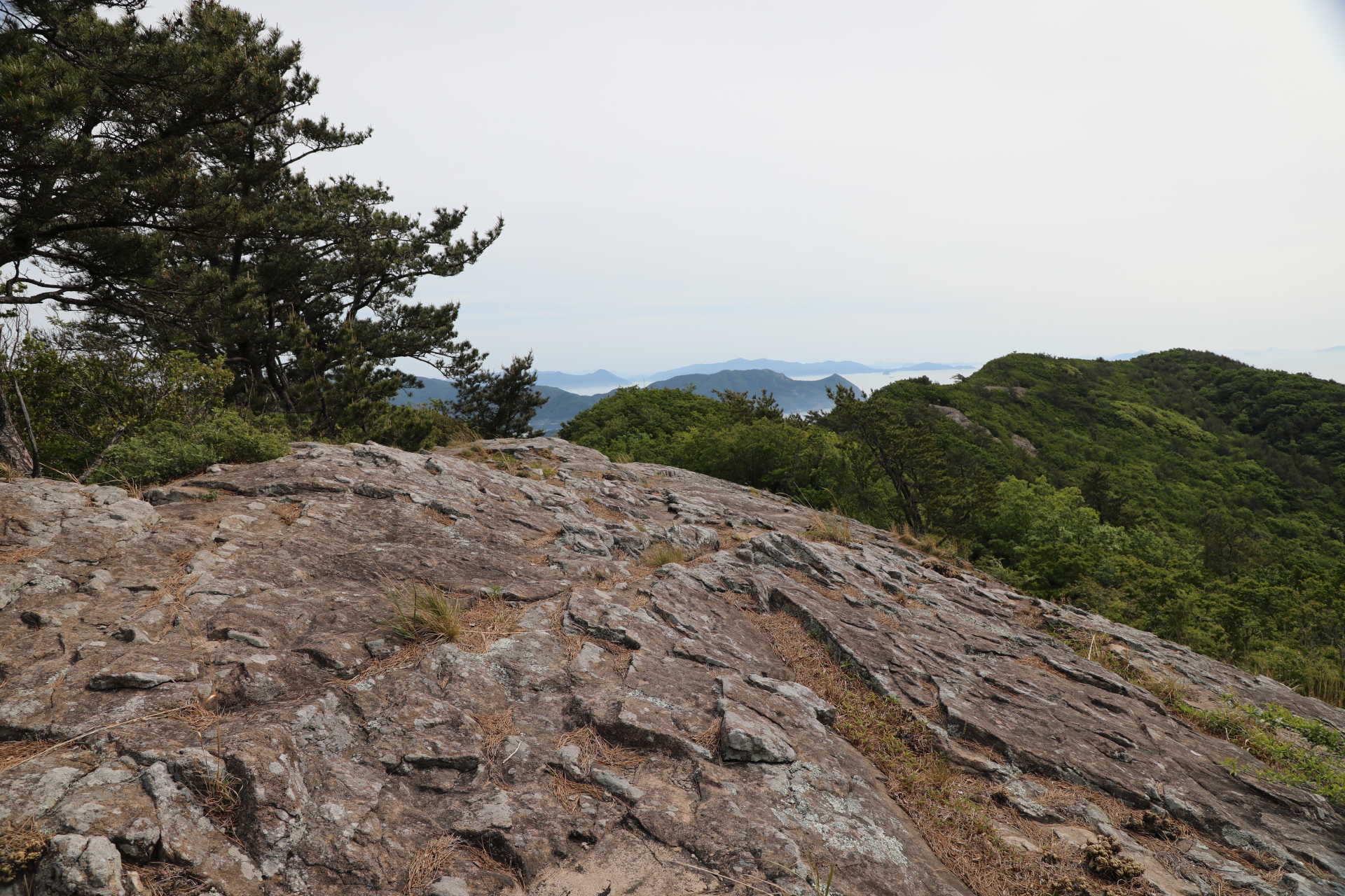 이런 가운데 조금만 암릉이 있어 조망이 터진 사이로 바다를 본다.