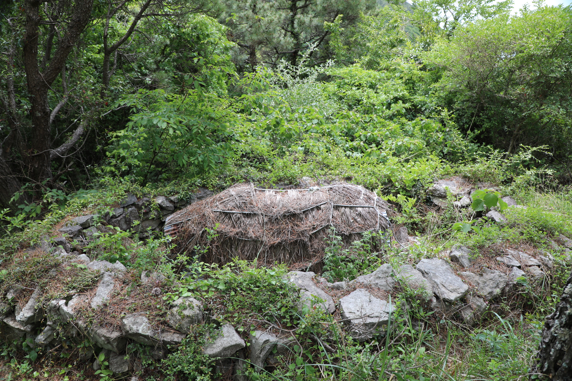 이곳 초분은 돌을 쌓고 시신을 올려주는 고임 초분 형태로 2년 전까지 행해져 왔던 초분 터에 그대로 복원한 것이다.