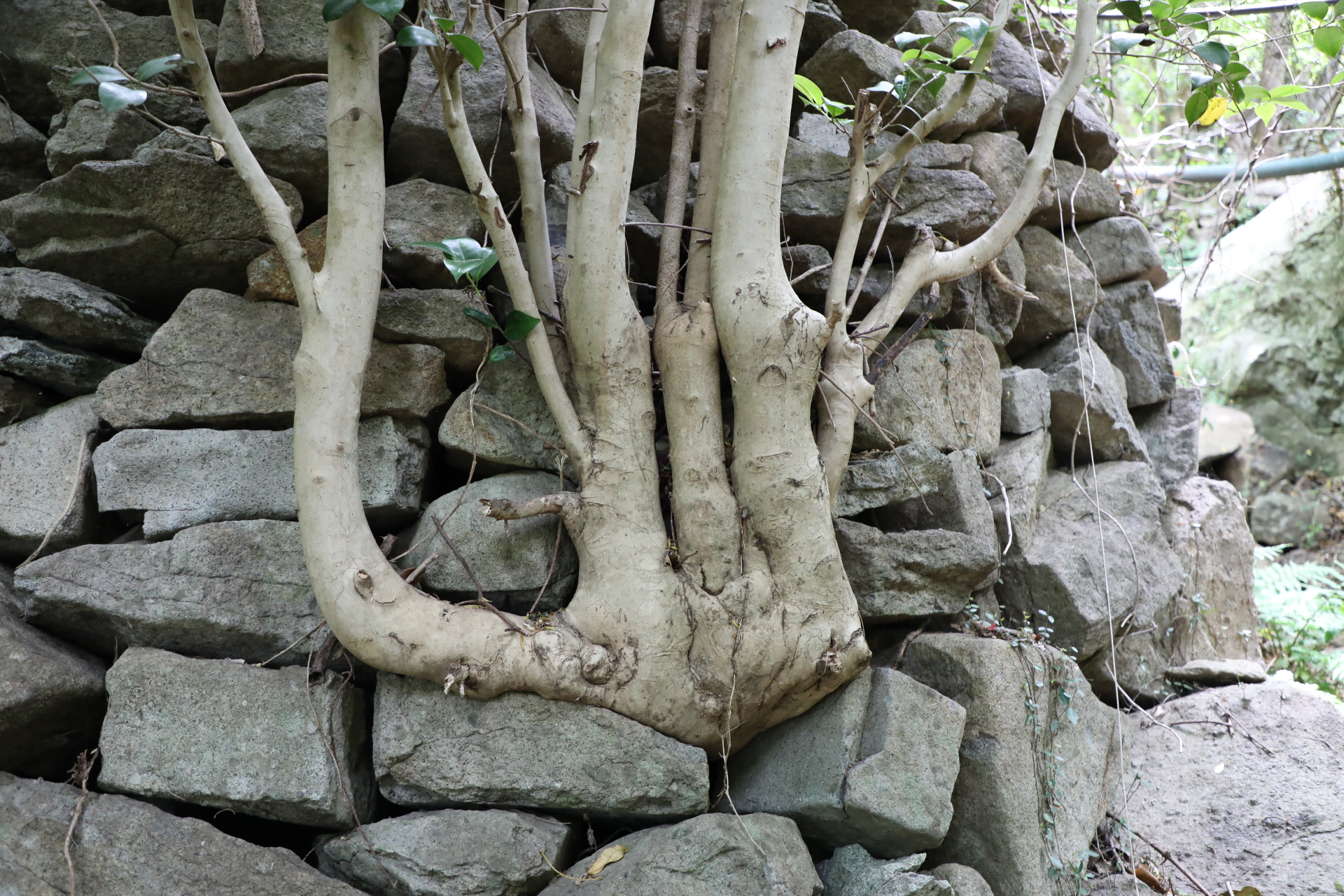 오래된 담장에 나무가 뿌리를 박고 생존의 기술을 기막히게 펼치고 있다.