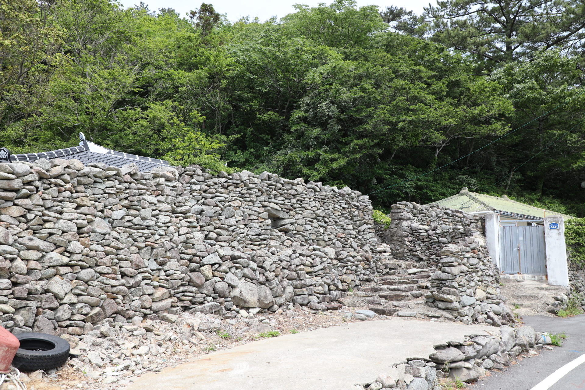바닷가에 바람이 많이 불어 돌담을 높게 쌓았다.