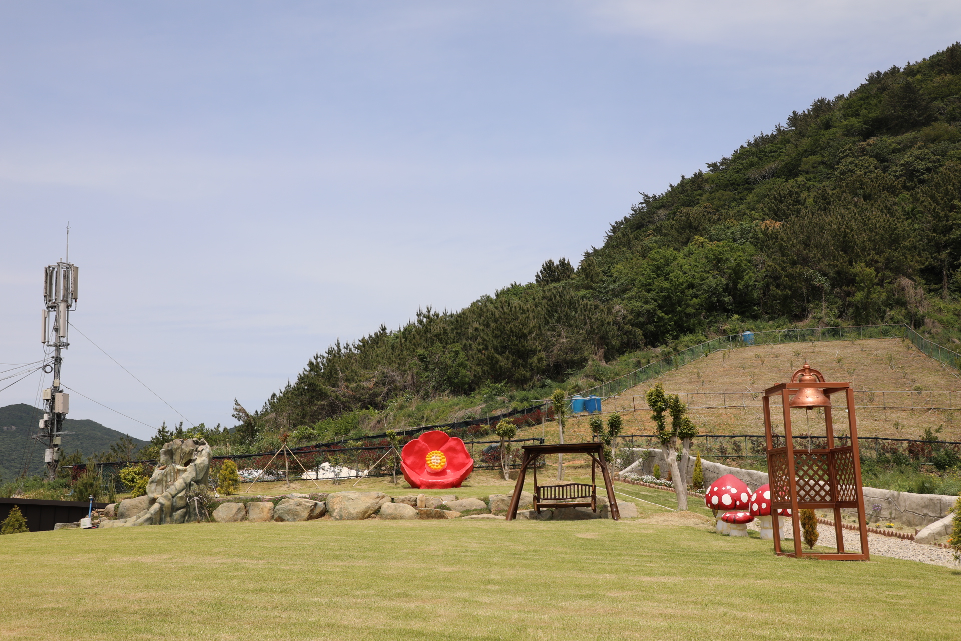 2코스에 차가 들어가는 어느 마지막 펜션의 정원이다.