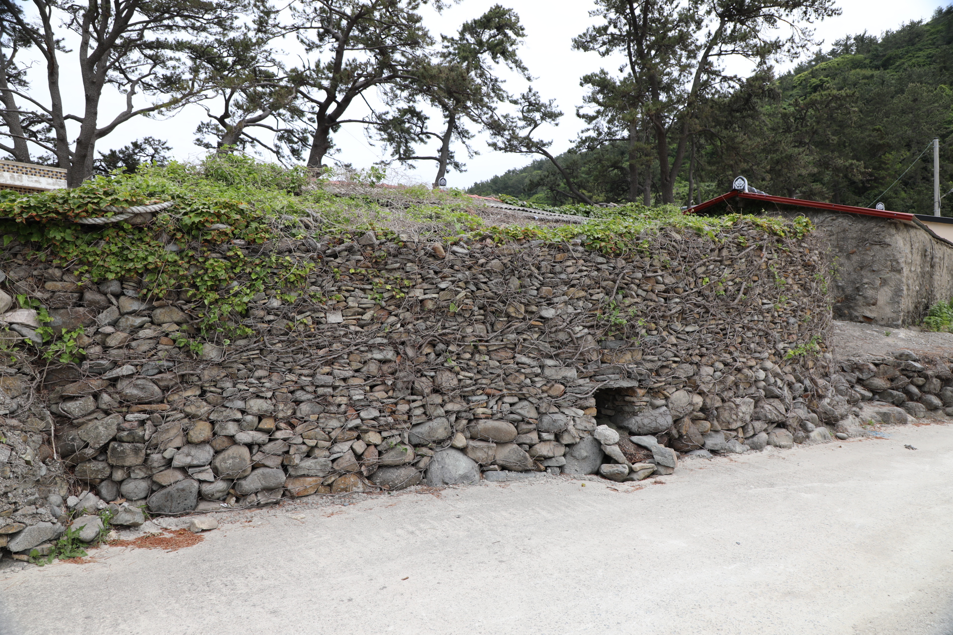 밖으로 나오는 통로에게 낮고 돌담을 쌓아 바람을 막는다.