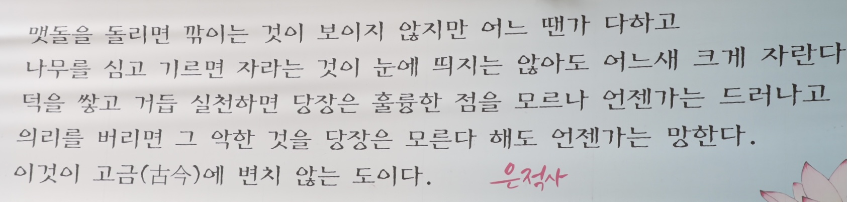 은적사의 규모는 크지 않지만, 호국의 도시 여수의 유서 깊은 사찰 가운데 하나이다. (안내문)