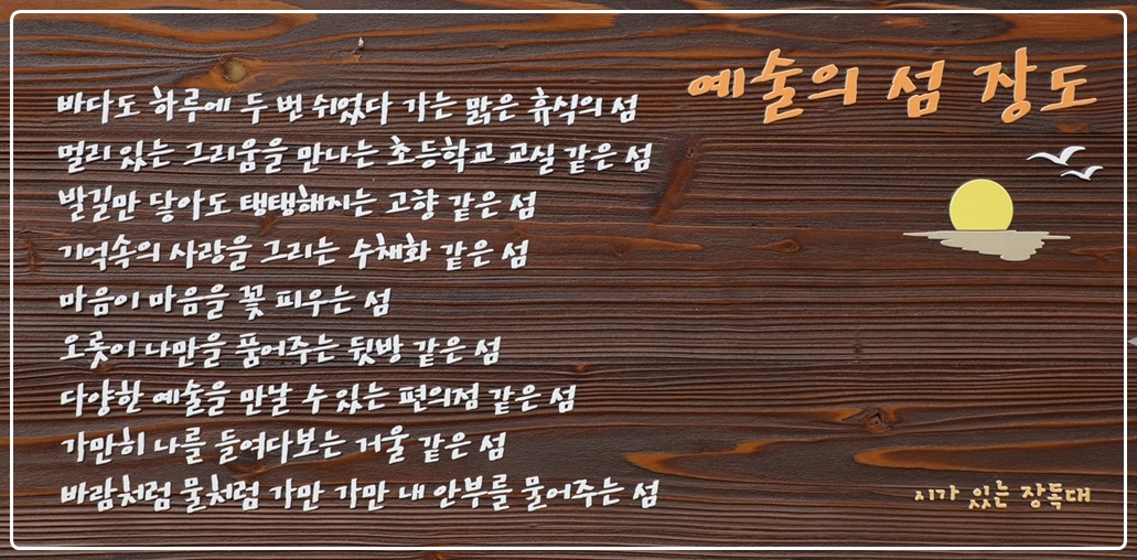아울러 섬 중앙부에 위치한 장도 전시관은 예술가의 작품세계를 펼칠 수 있는 공간이며,