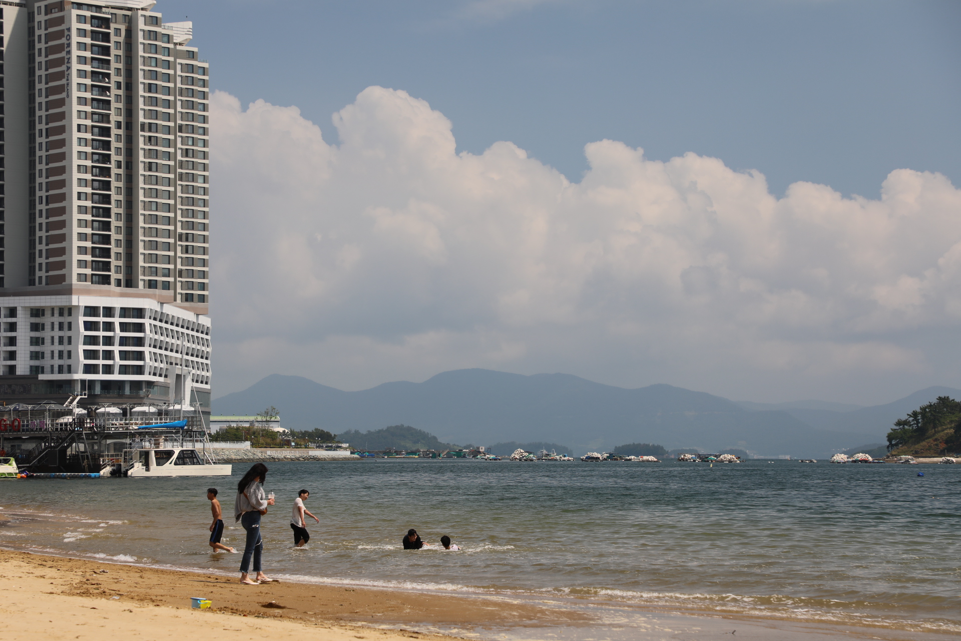 중고등학교의 정도의 젊은이 대여섯 명은 저희들끼리 즐겁게 놀고, 10여 명은 해수욕 중이다.