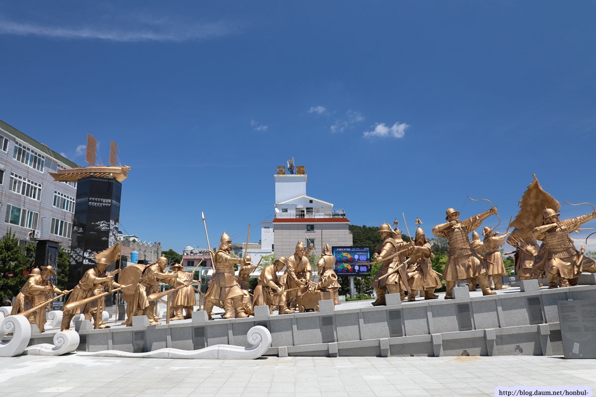 한참을 이동해 지하에 있는 주차장에 주차하고 나오니 지상은 한산대첩 광장이다.
