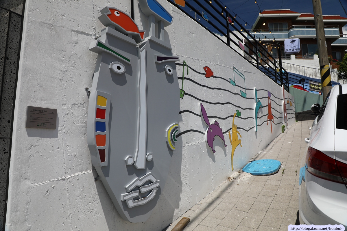 주차하고 동피랑까지 걸어가는 길에 만난 길가 조형물