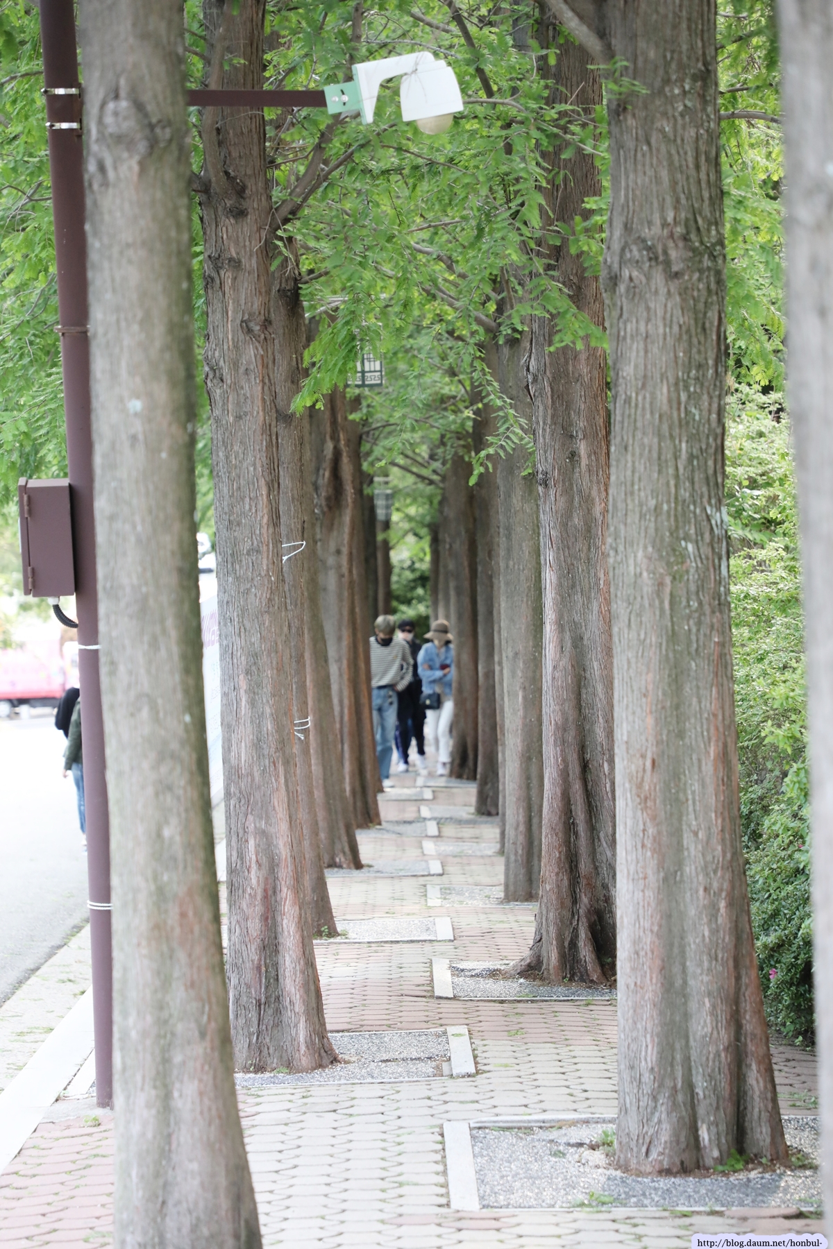 한 사람 겨우 다닐 정도의 너비로 심은 메타세쿼이아 가로수