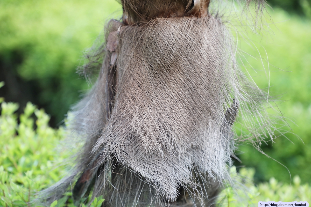 종려나무 껍질은 이렇게 가로 세로로 이어진 섬유질이 성긴 옷감 같다.