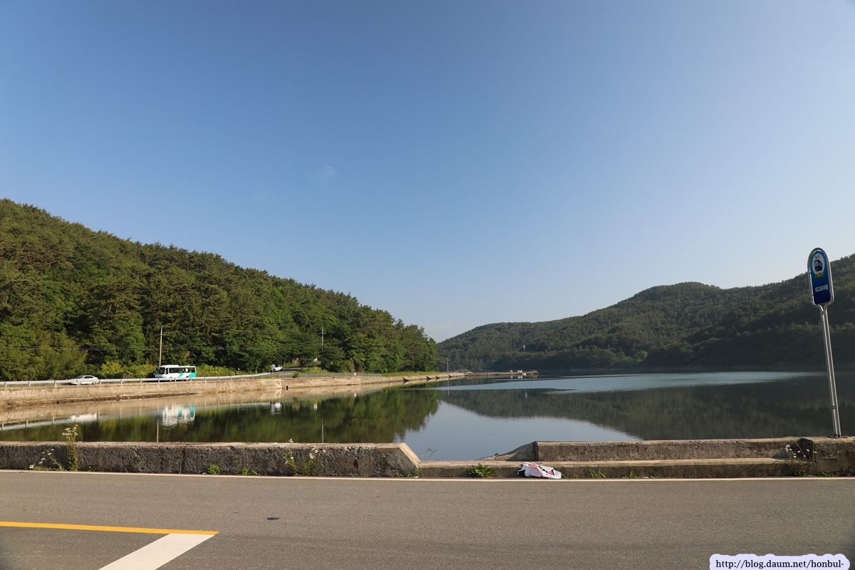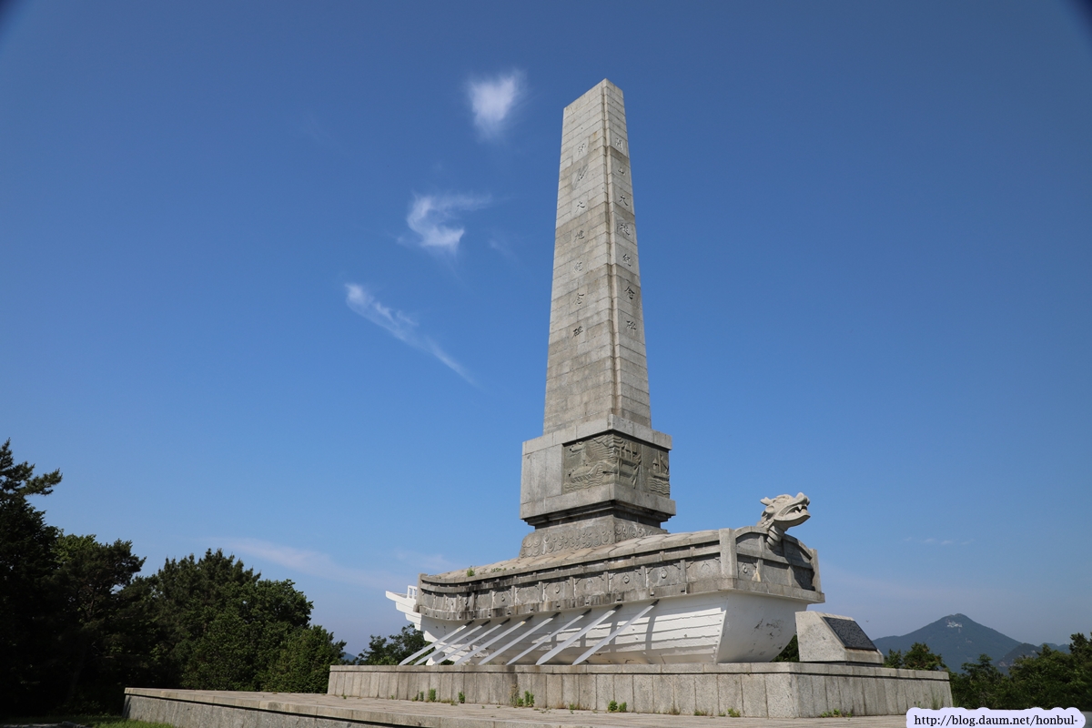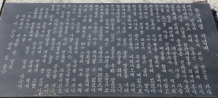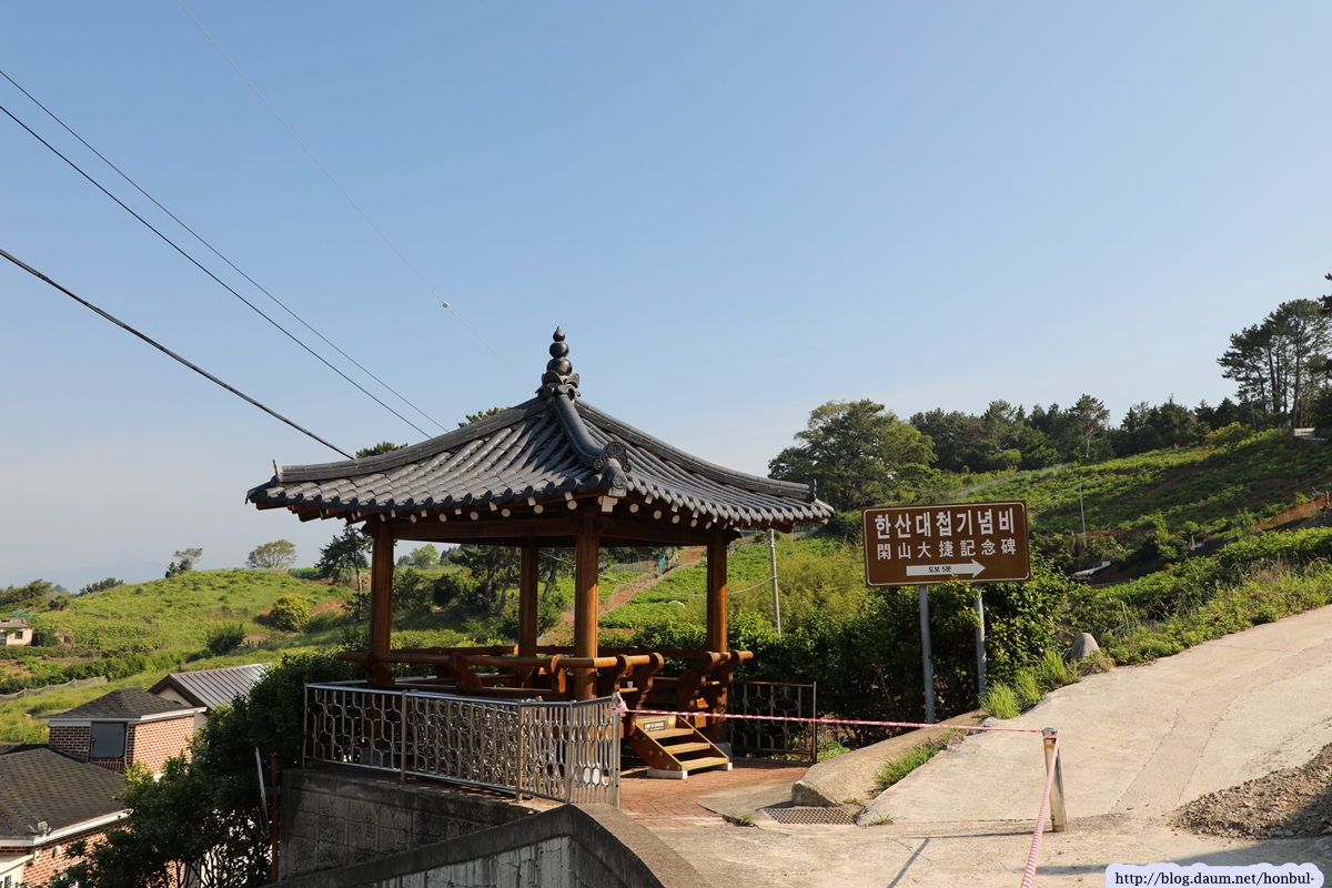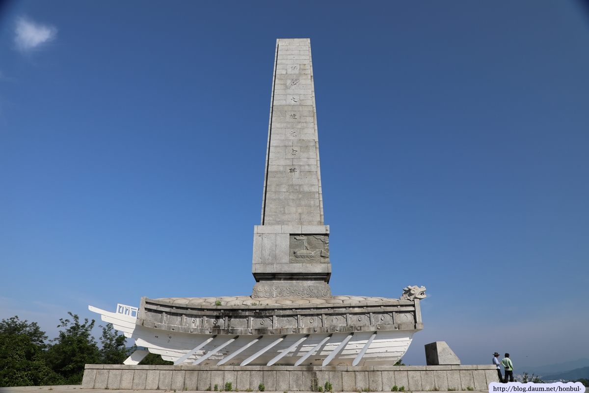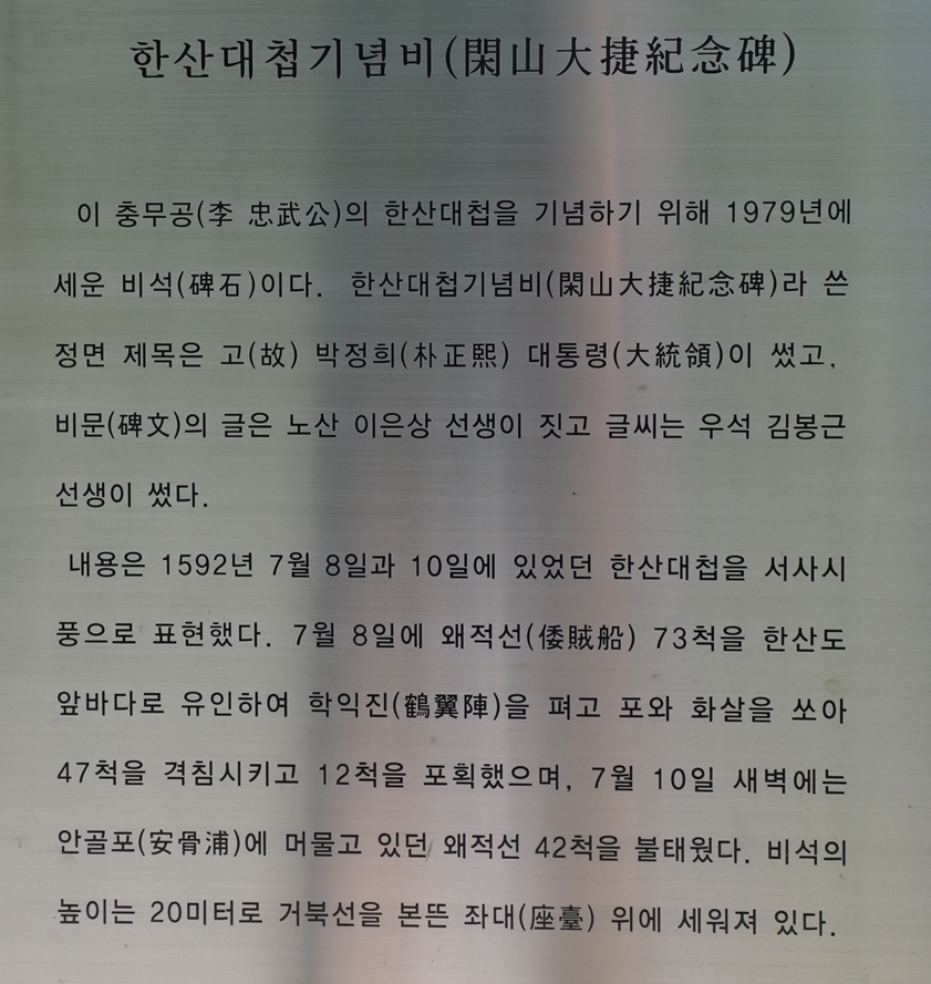 한반도는 차를 타고 다니며 "한산대첩 기념비"만 걸어서 올라갔다.