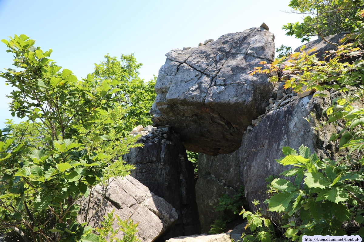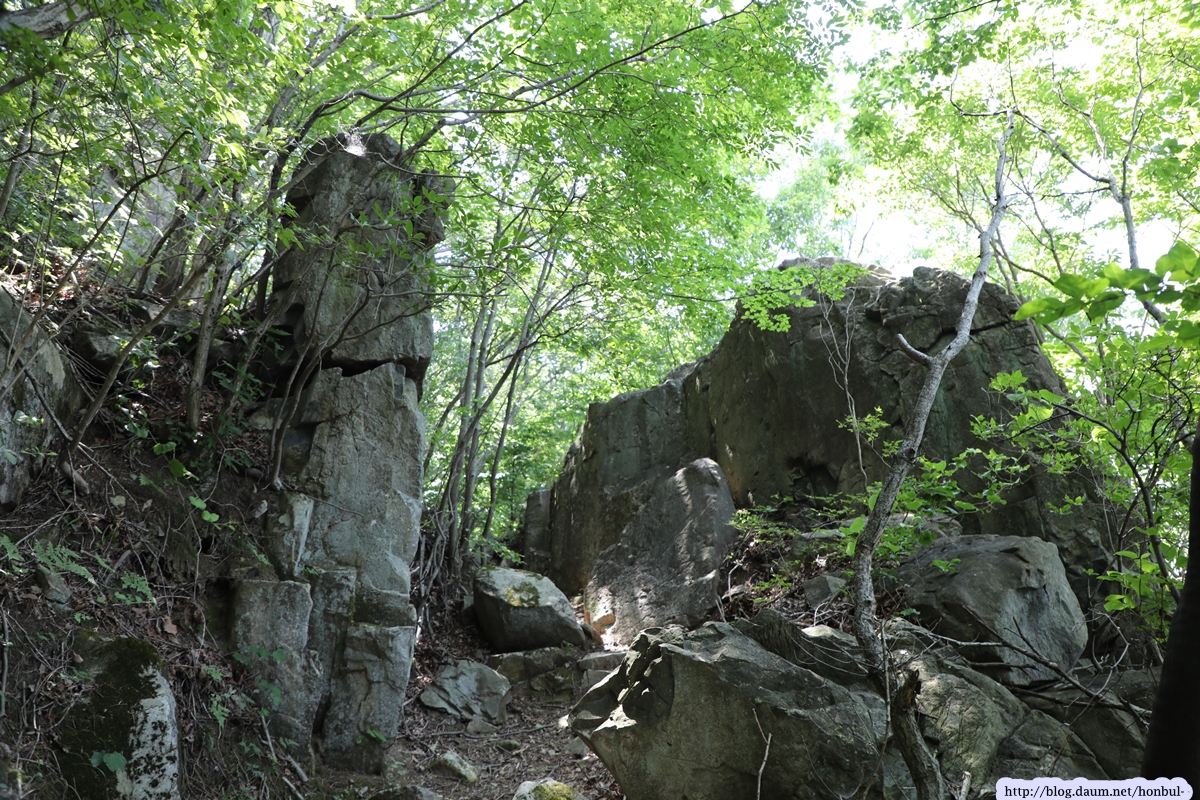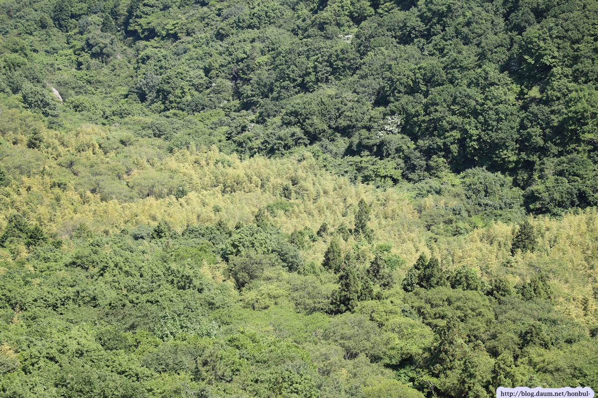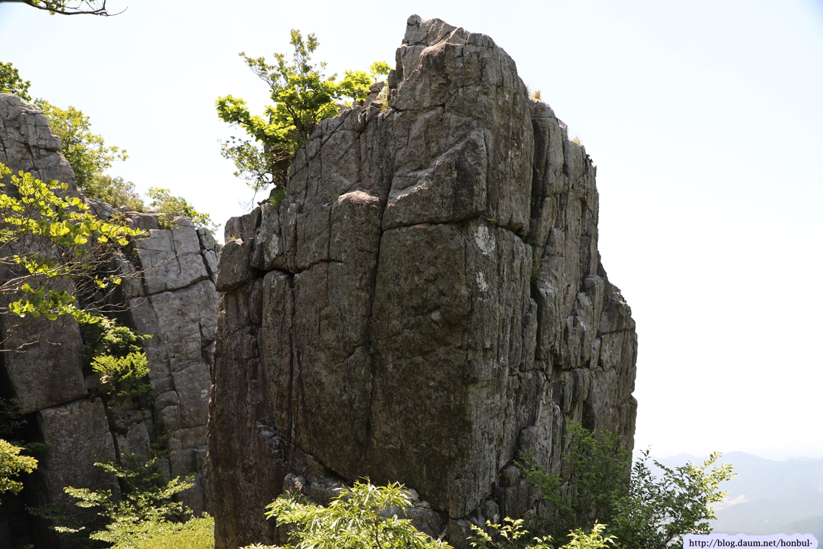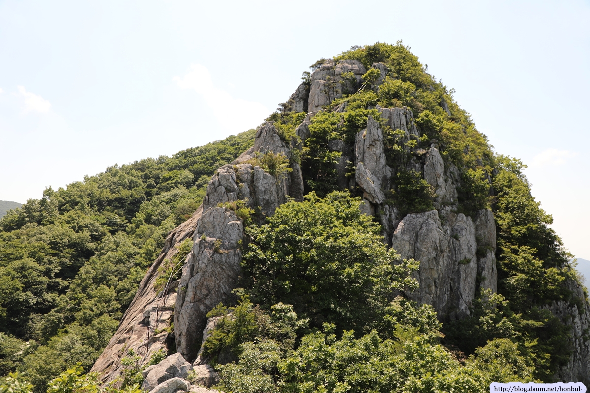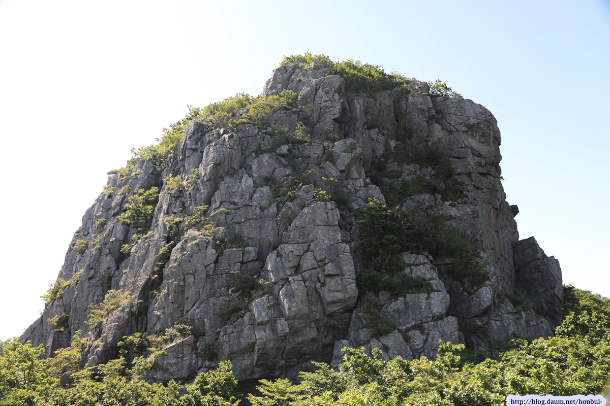 해발 400m 이상의 정상부는 암석이 노출되어 절벽을 형성하고 있으며,