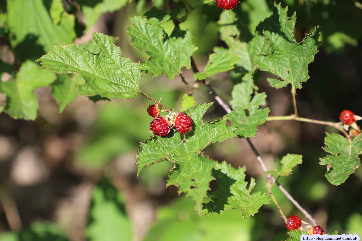 임도엔 제법 잘 익은 복분자가 눈에 띄지만 천성이 이런 걸 먹지 않아 사진만 찍고 만다.