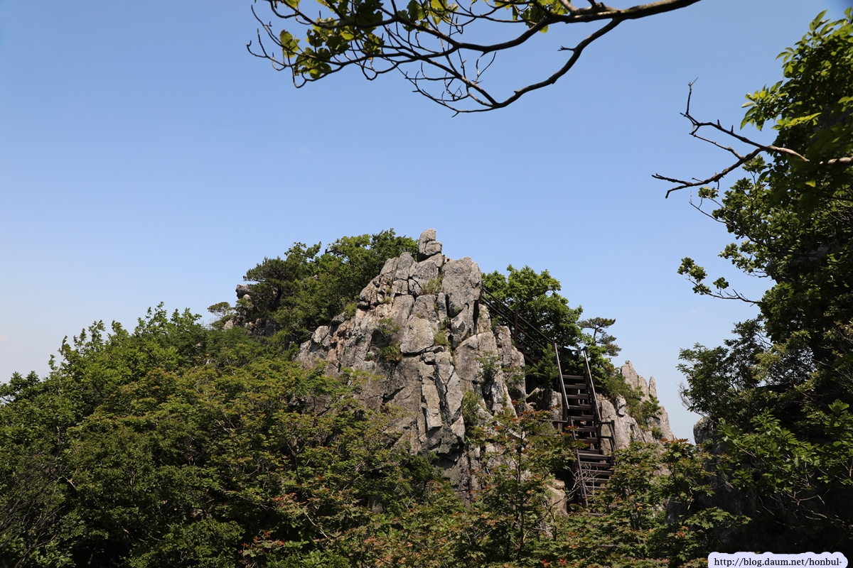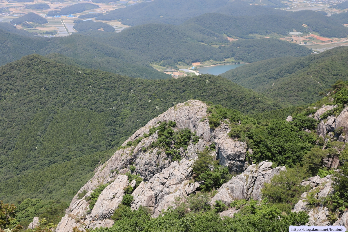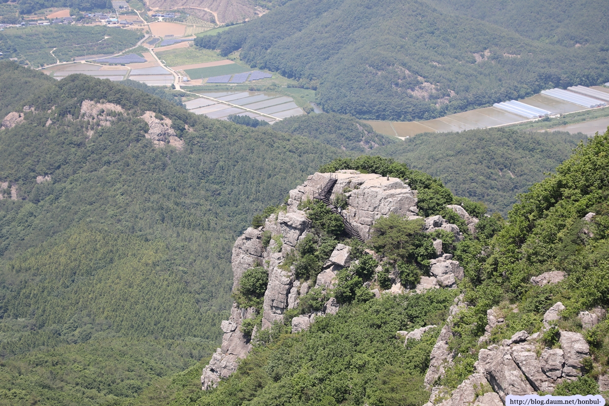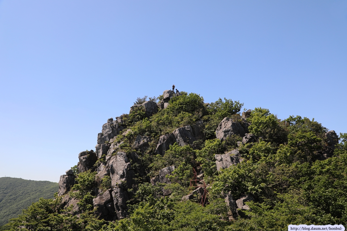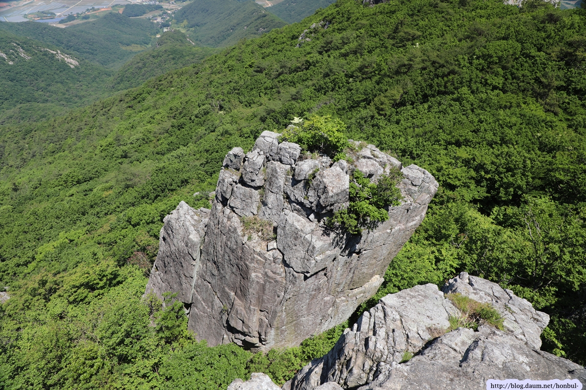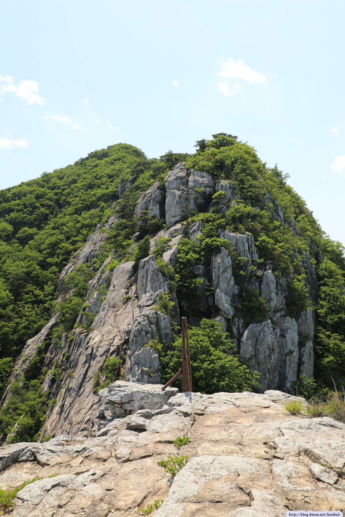 선녀봉 정상에서 보면 이렇다 할 특징이 없으나 강산마을에서 올라오며 보는 암릉의 위용은 대단하다.