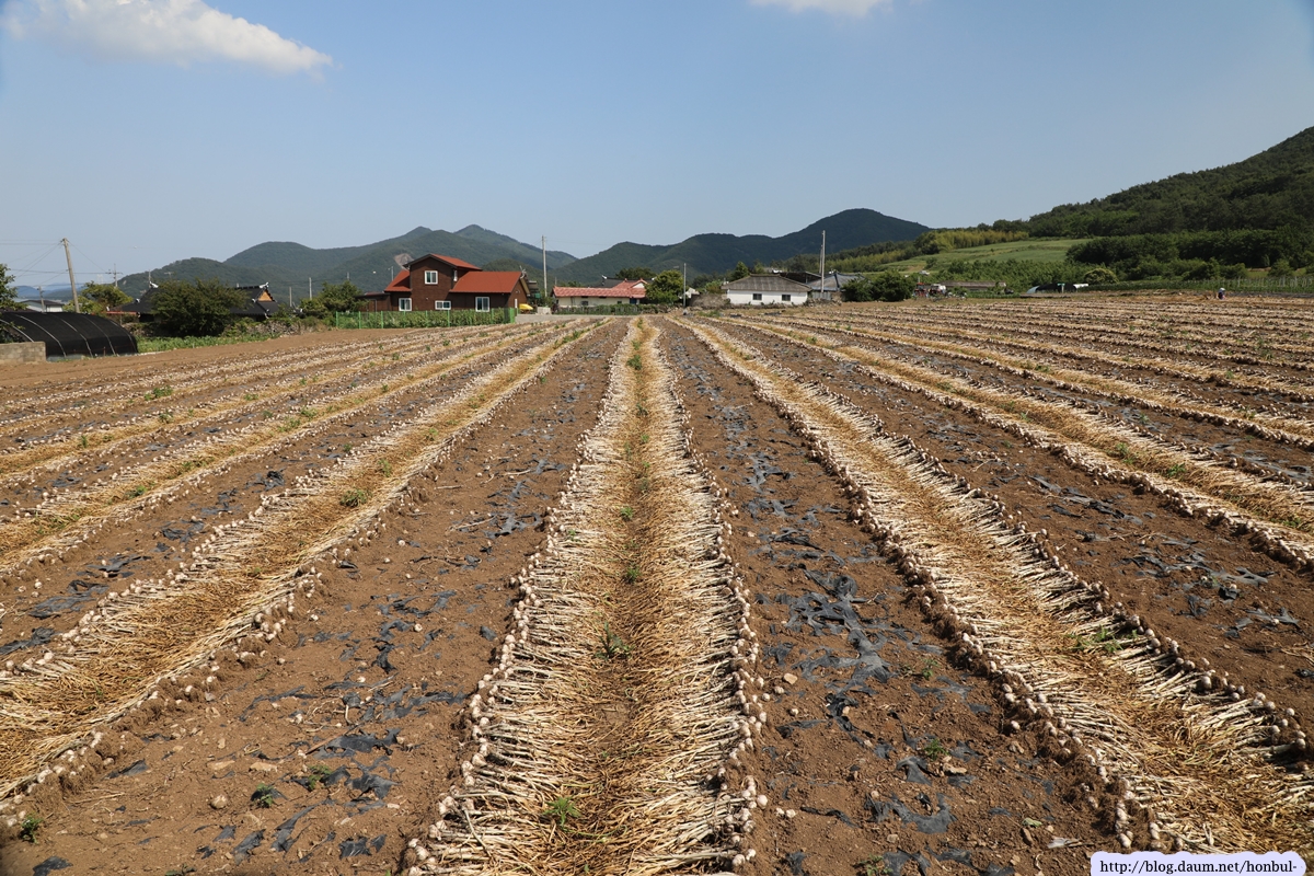 마늘밭에서 수확한 마늘은 밭에서 그대로 건조한다.