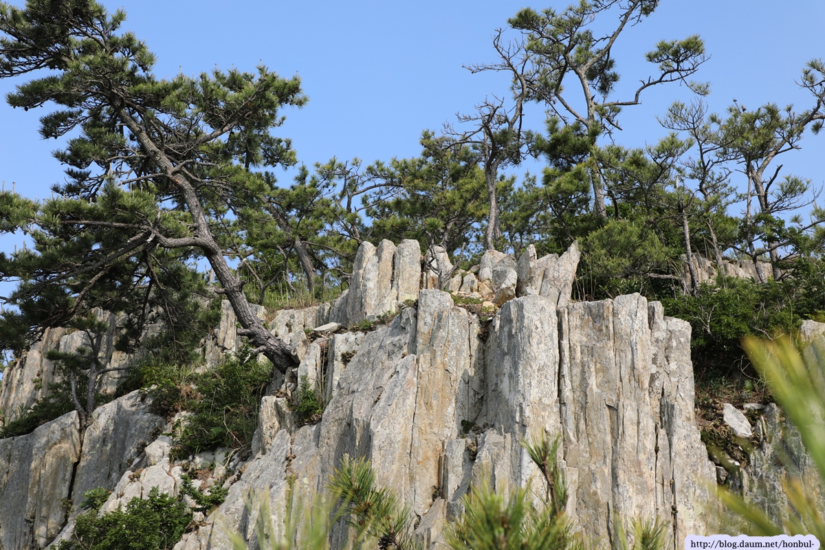 무작정 해안쪽으로 난 길을 따라 내려가는데, 갑자기 서광이 비추듯 거대한 암릉이 보인다.