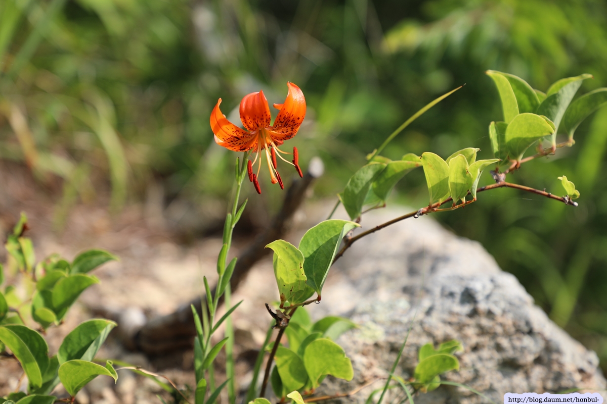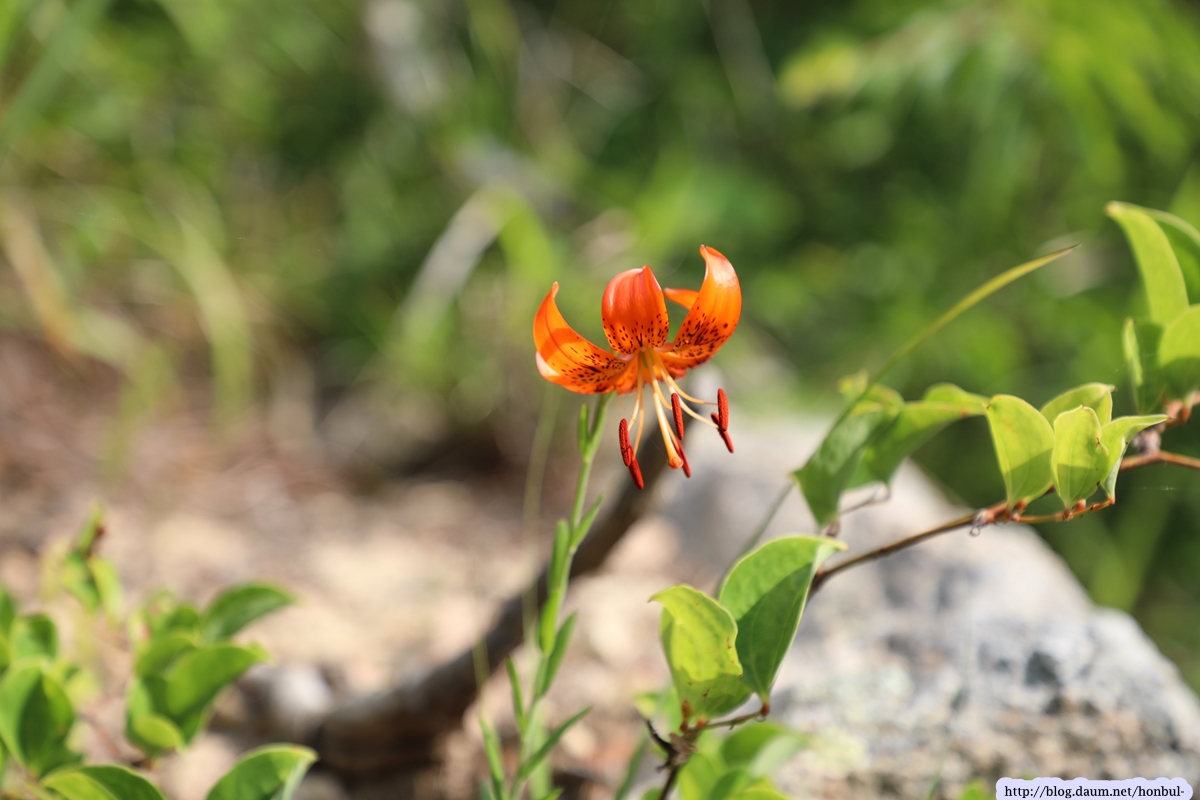 몇 장 사진을 찍고 이 마천루로 직접 내려가는 길에 털중나리 한 송이가 수줍게 고개를 숙였다.