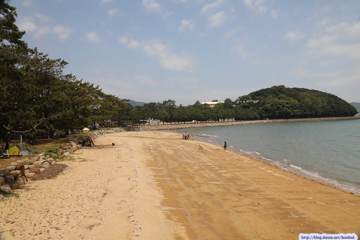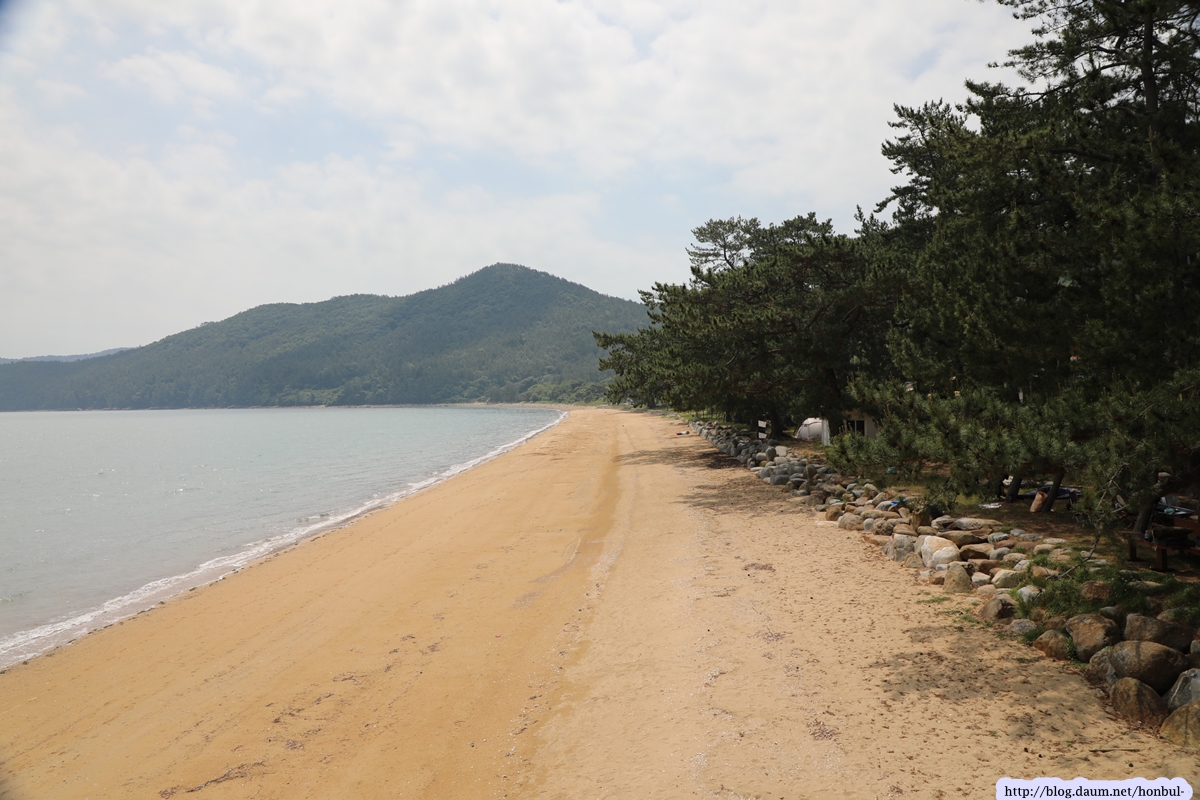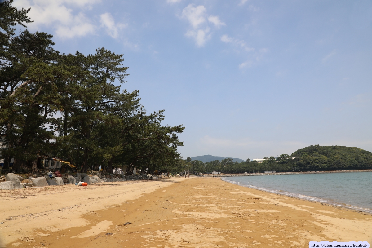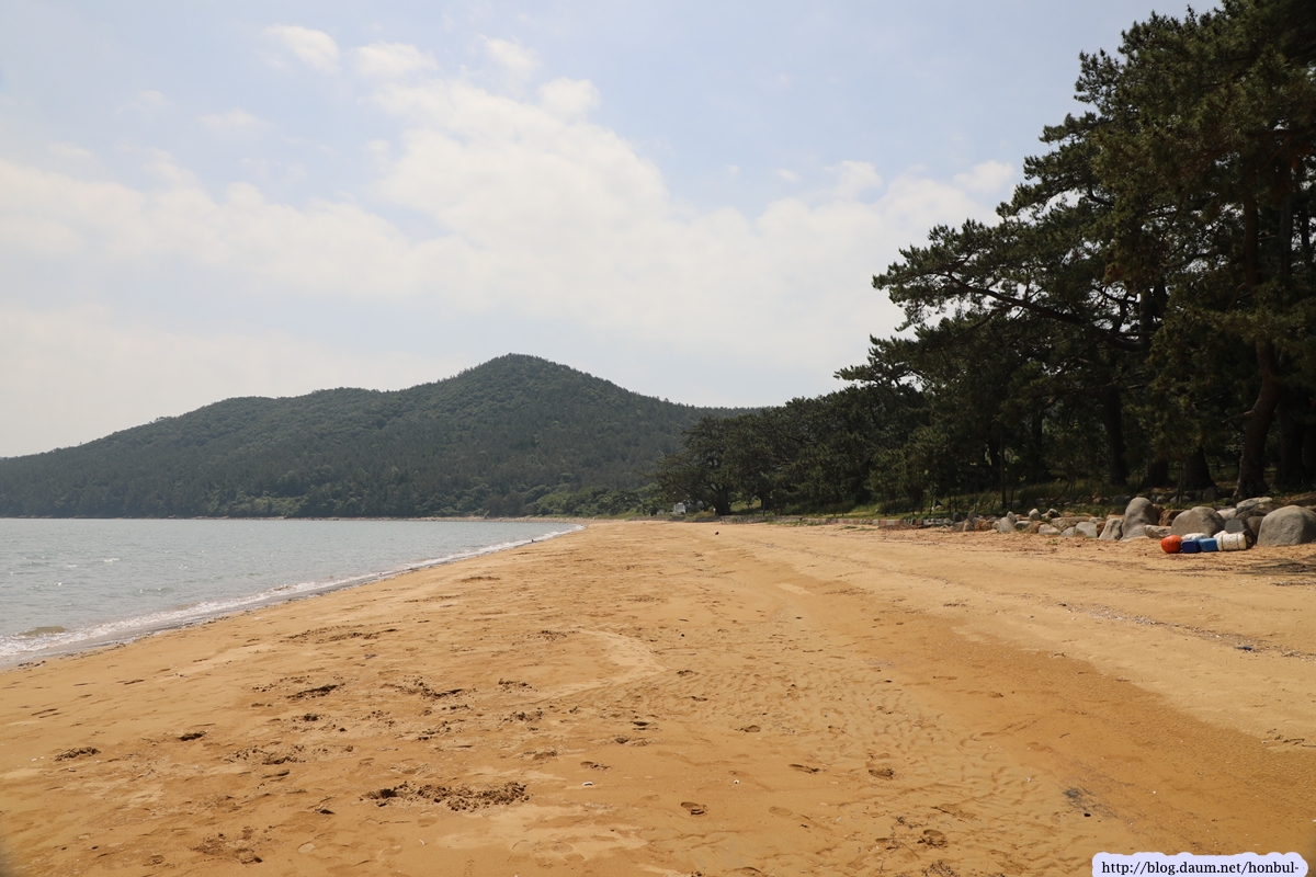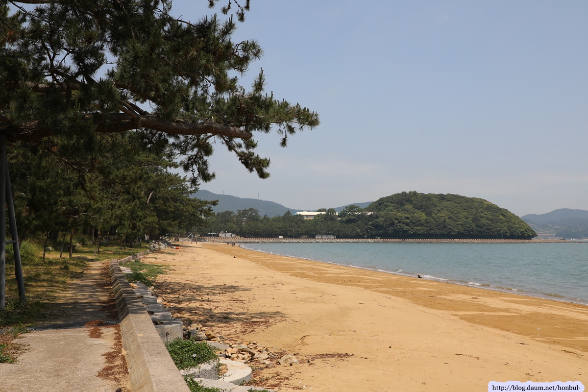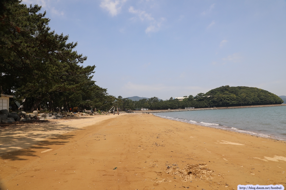 그들 사이를 지나 해수욕장에 들어서니 제법 긴 해변에 금빛 모래가 보기 좋다.