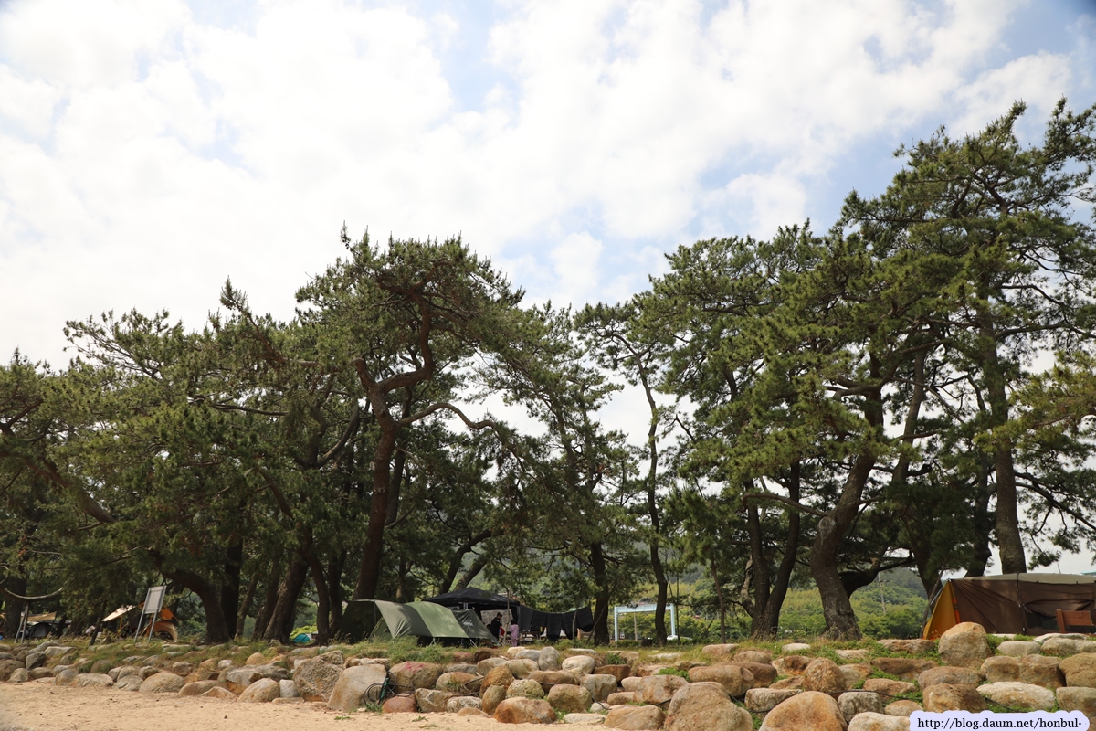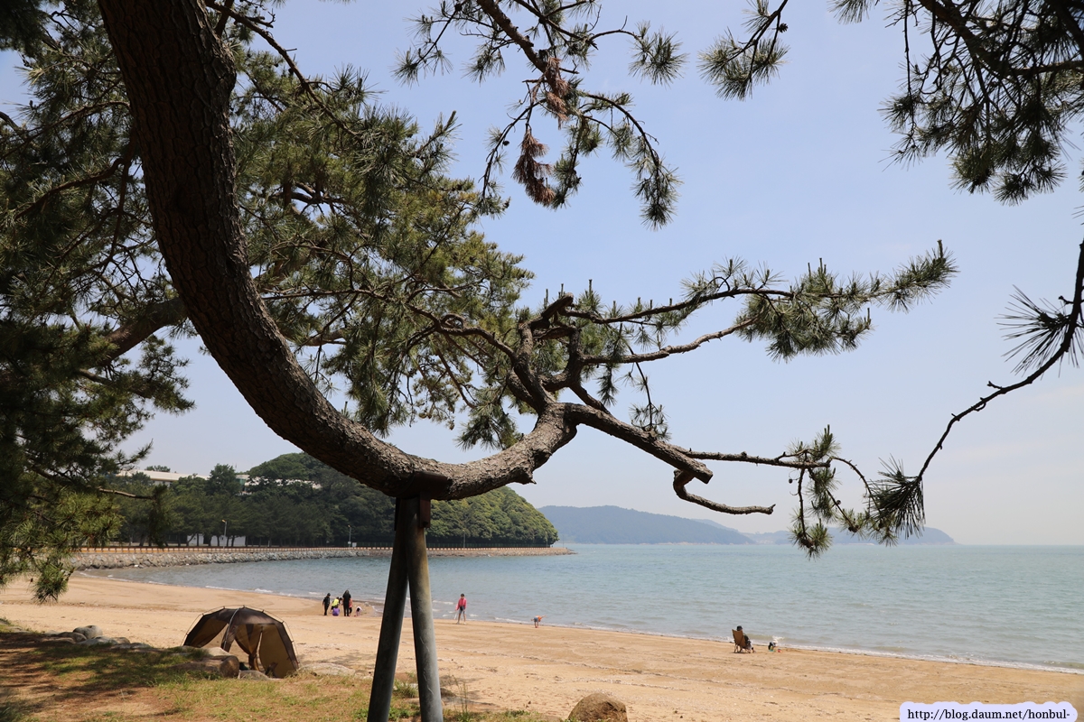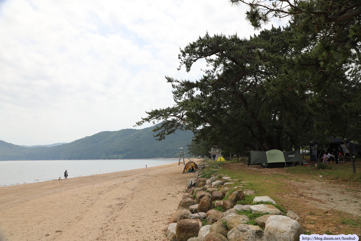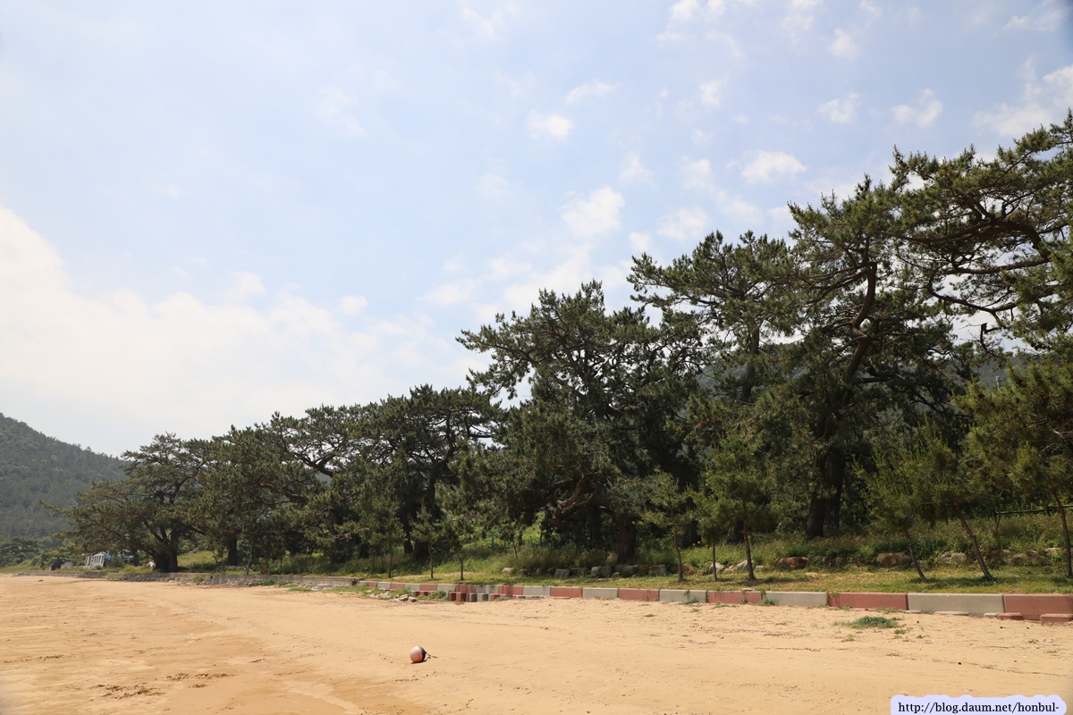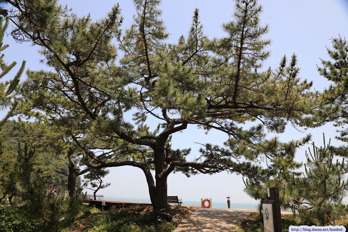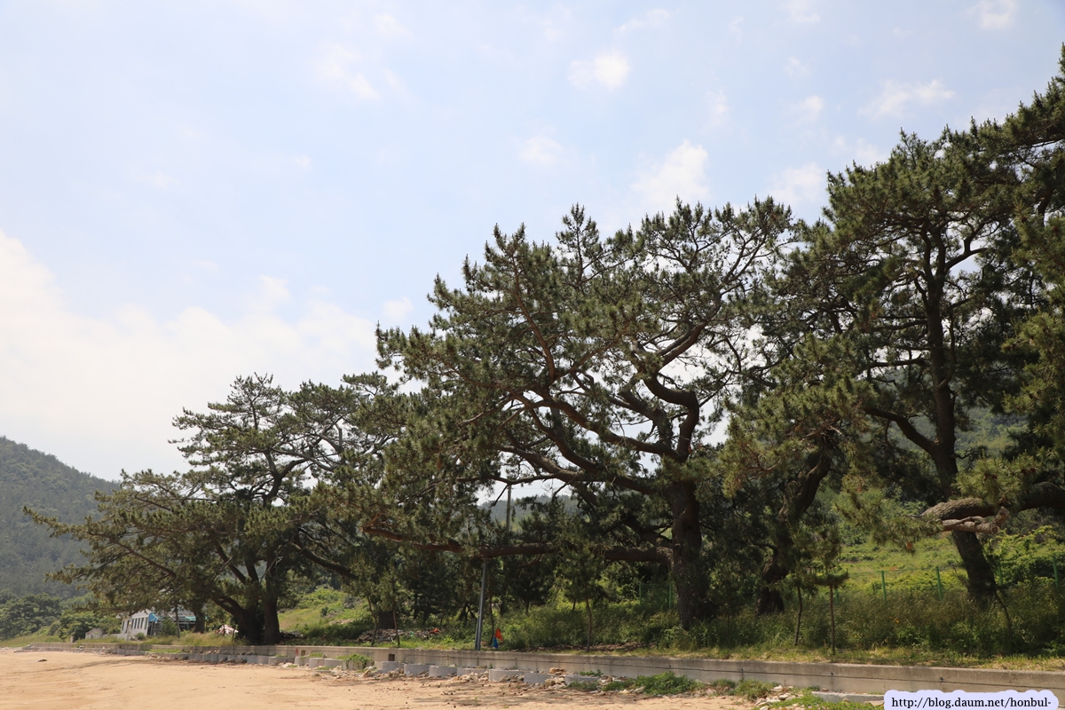 해변가에는 커다란 곰솔이 쭉 벋어 있어 여름철 최상의 피서지로 각광받겠다.