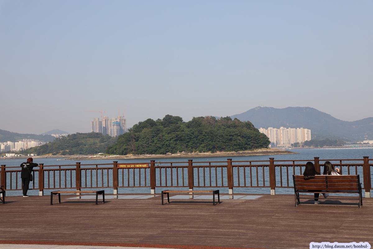 멀리 섬 뒤로 여수의 새로운 중심 코너인 웅천지구가 보인다.