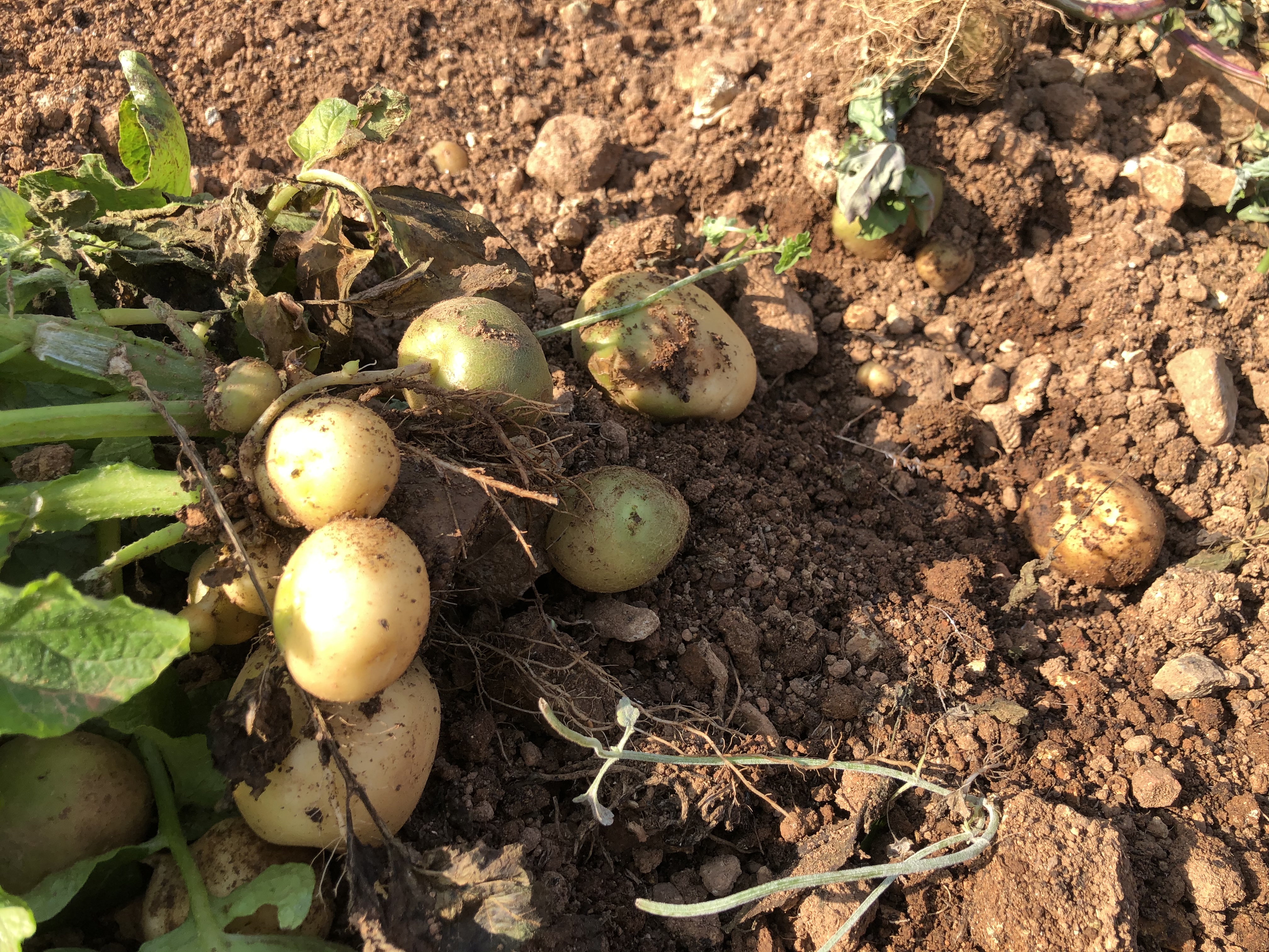 감자를 캐 보니 고구마보다 훨씬 쉽다.