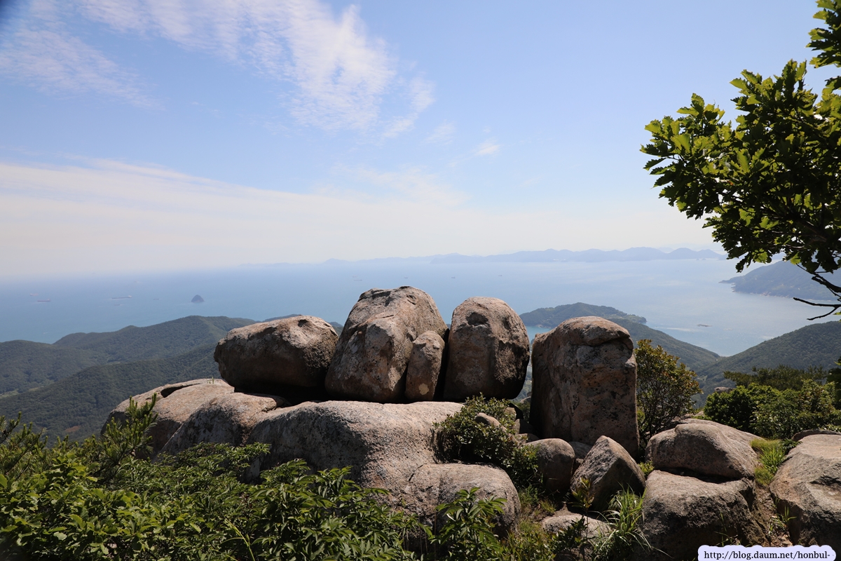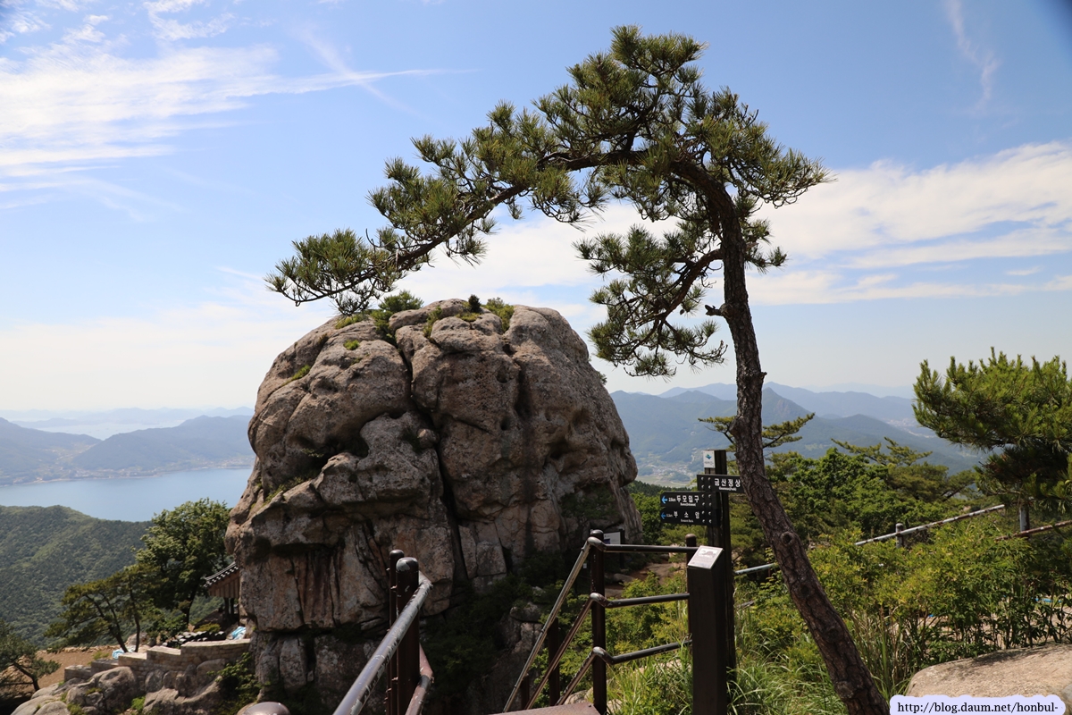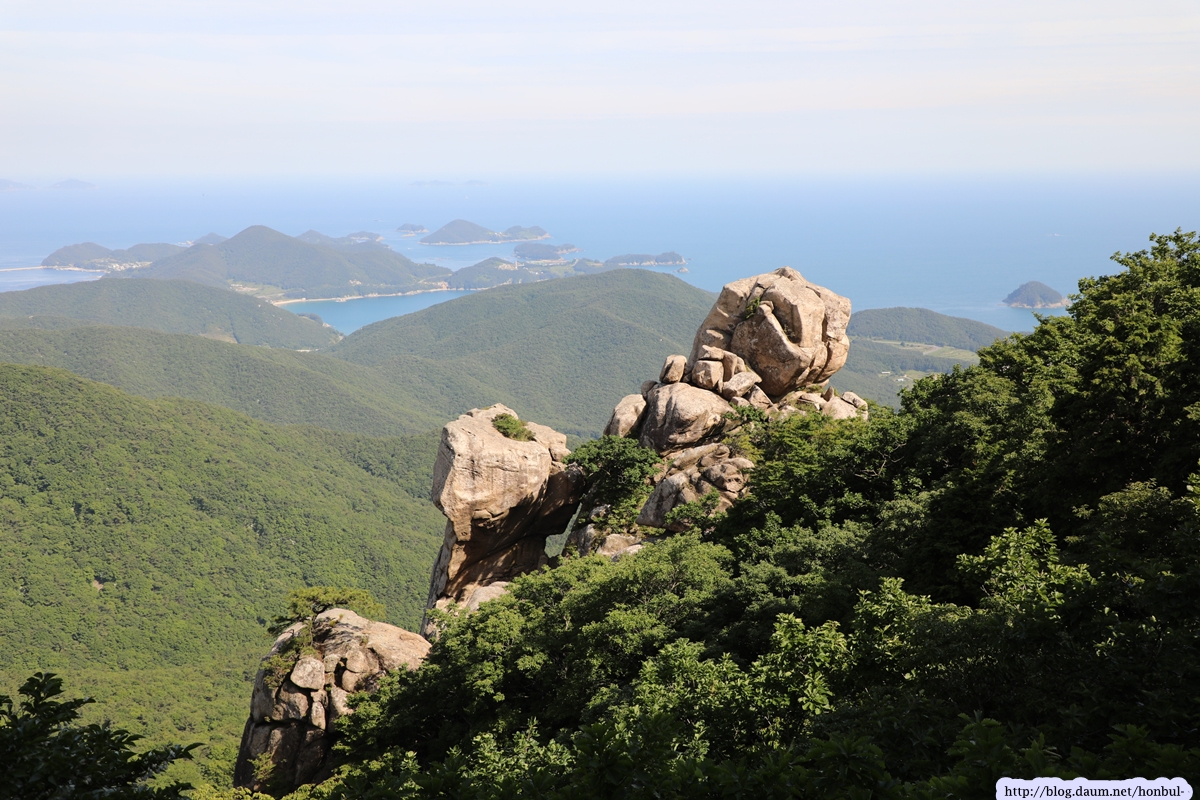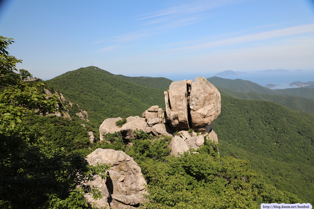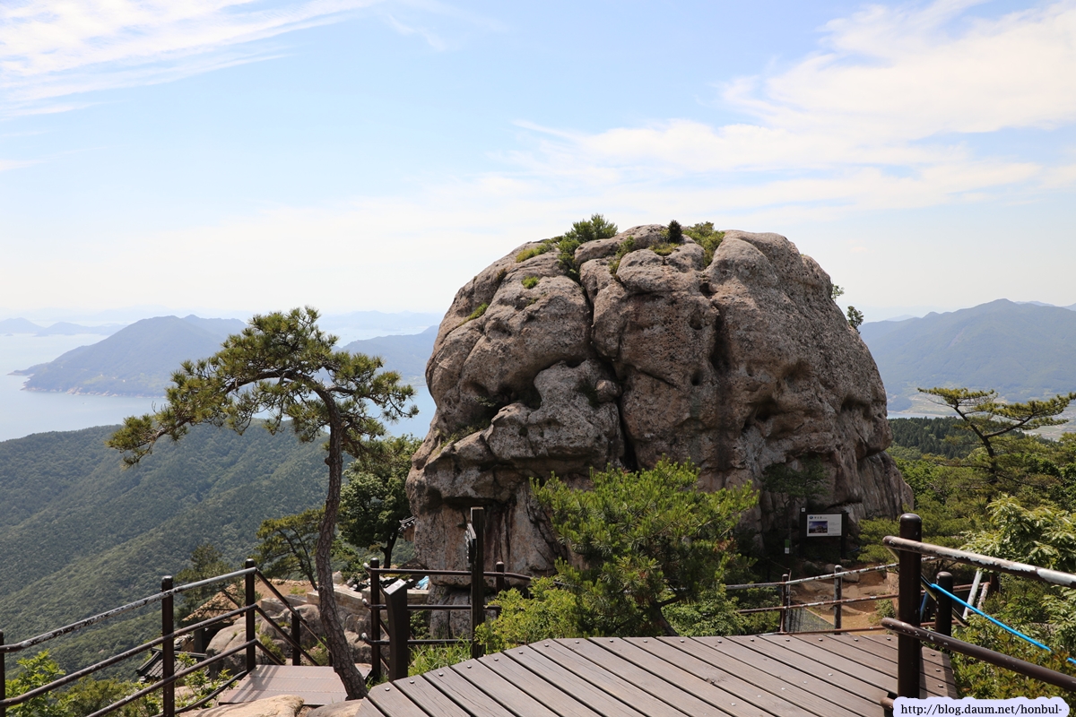 특히 정상에서는 크고 작은 섬과 넓은 바다를 한 눈에 굽어볼 수 있다. (안내문)