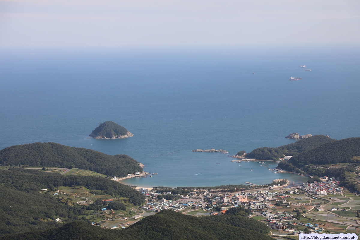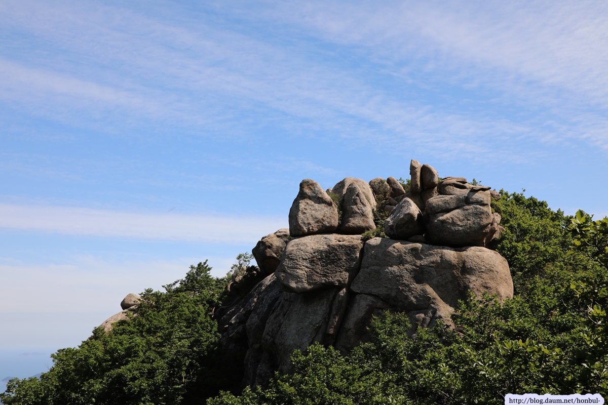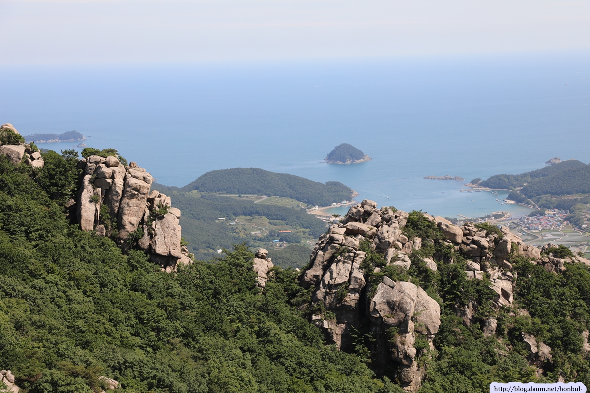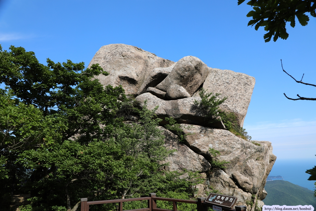 특히 정상에서는 크고 작은 섬과 넓은 바다를 한 눈에 굽어볼 수 있다. (안내문)