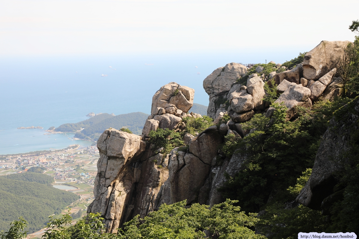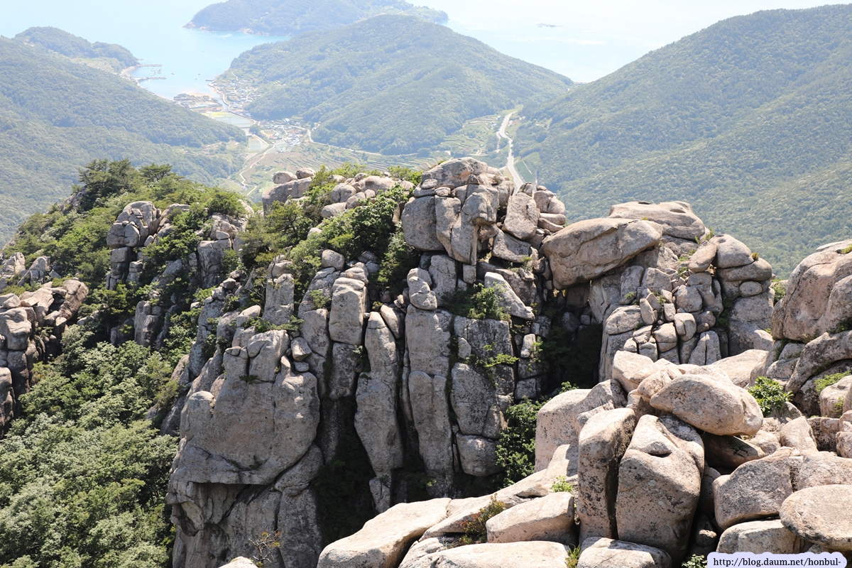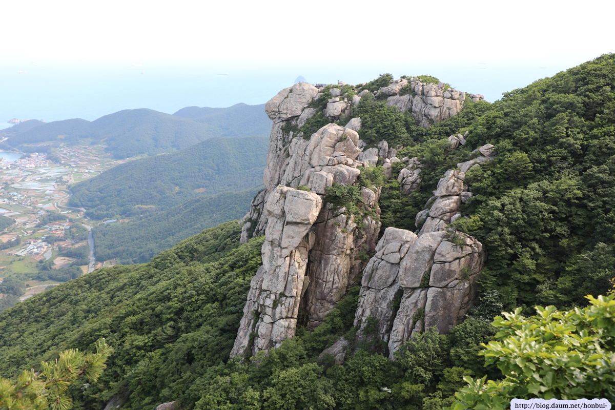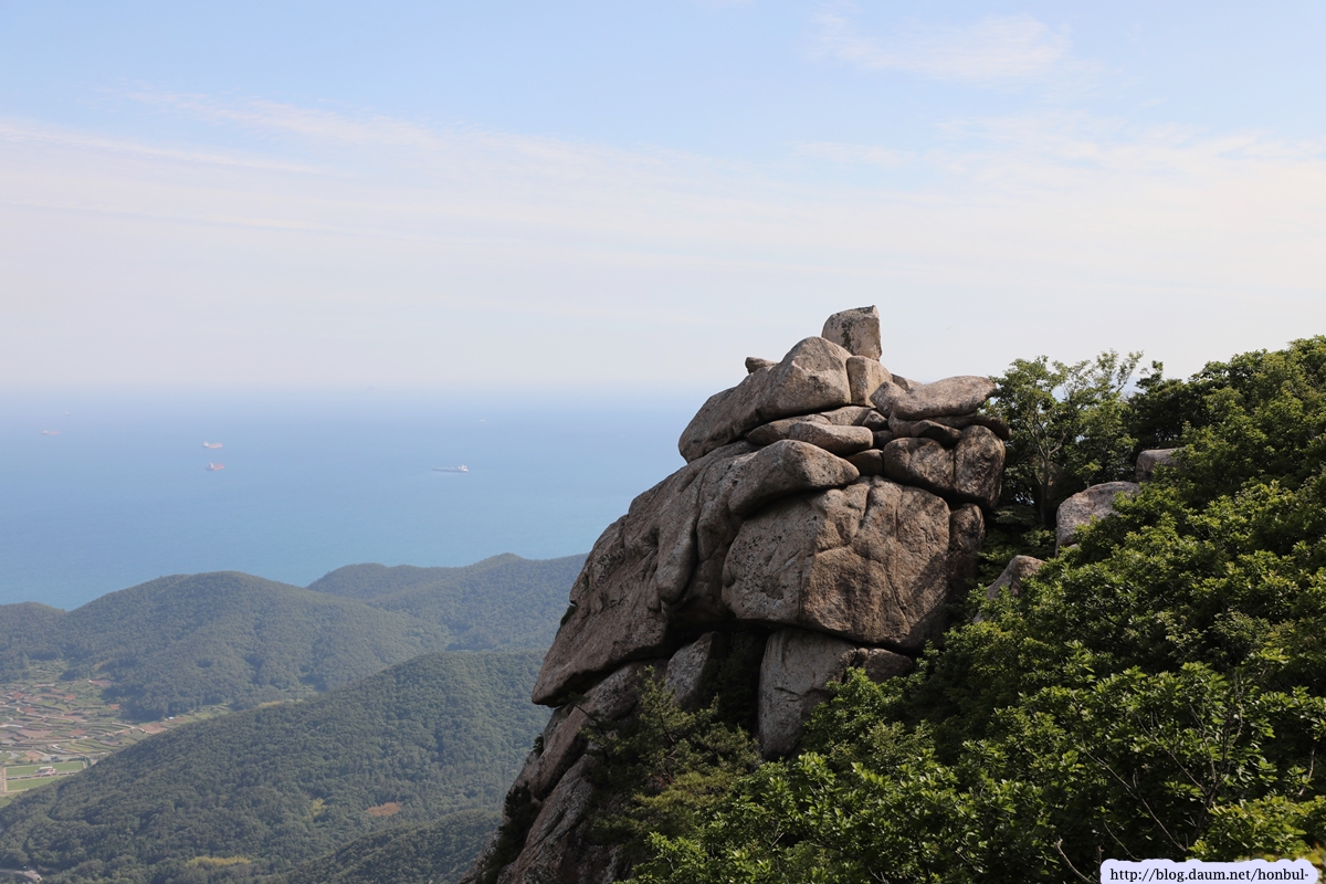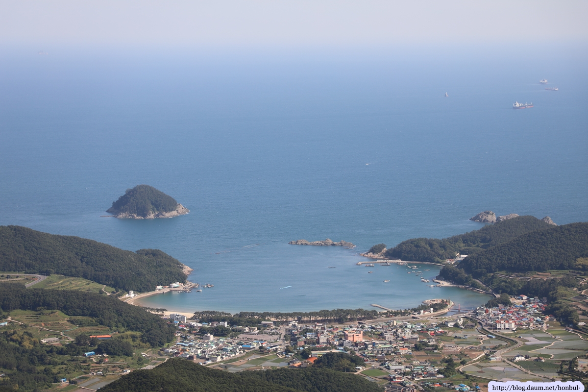 특히 정상에서는 크고 작은 섬과 넓은 바다를 한 눈에 굽어볼 수 있다. (안내문)