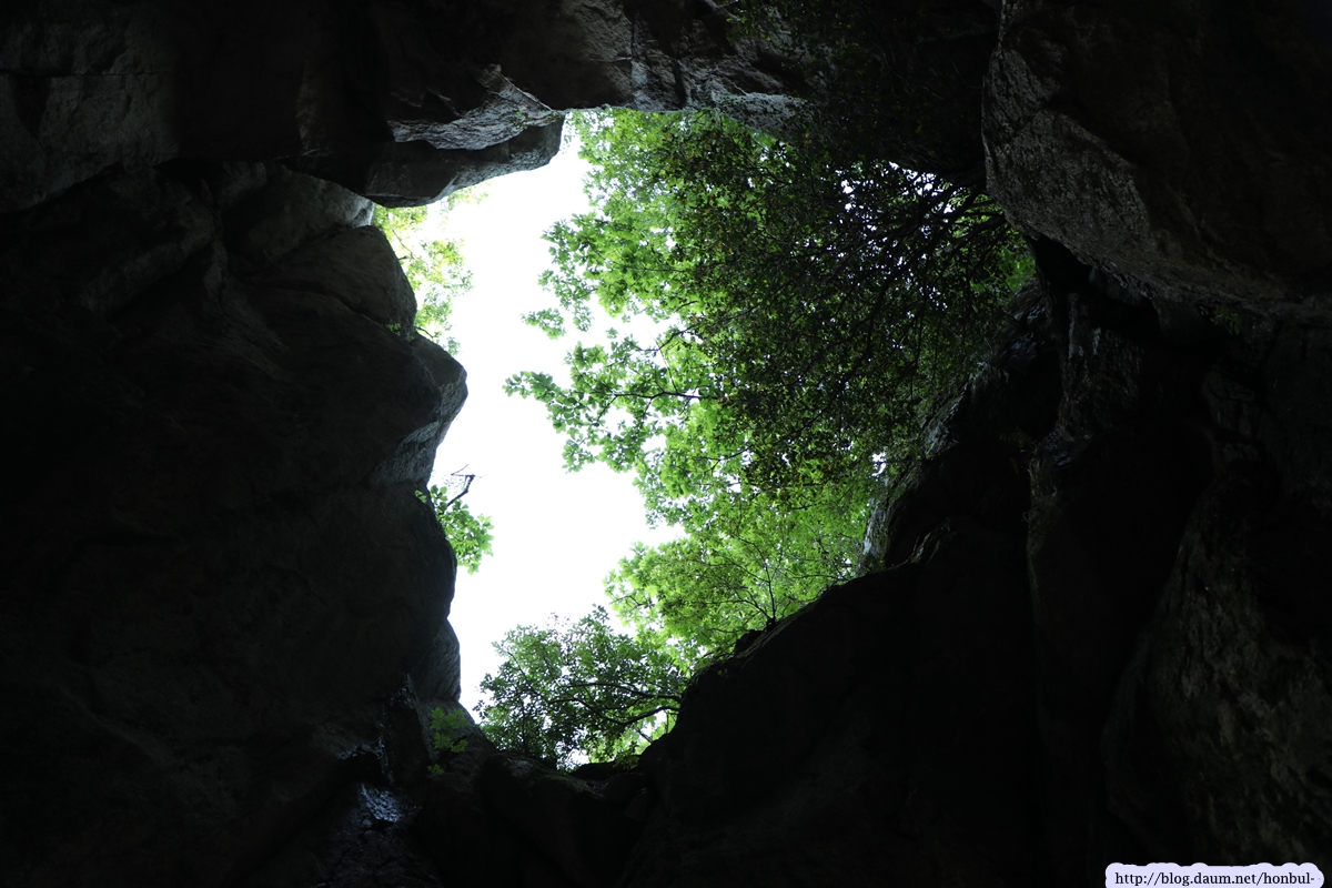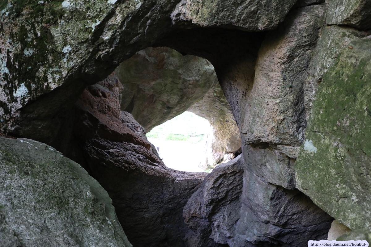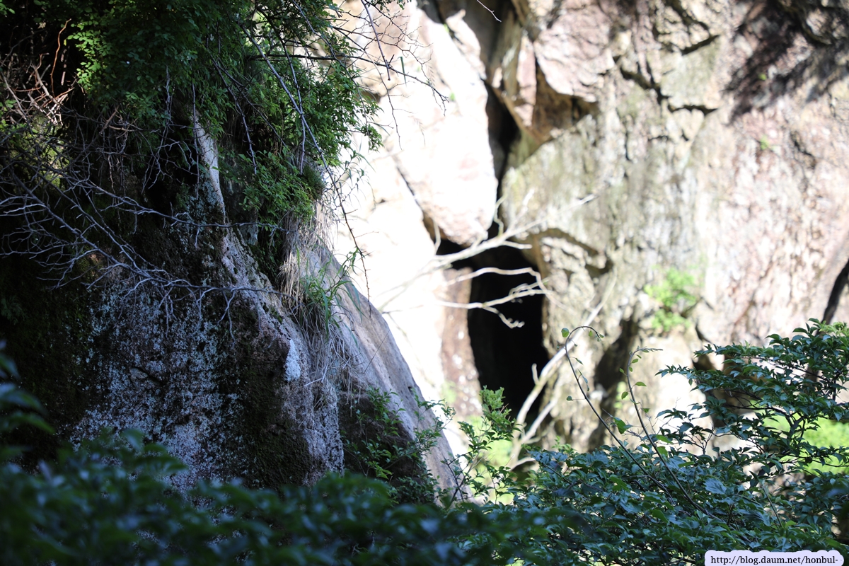 쌍홍문의 우측 굴 밖으로 보이는 장군봉