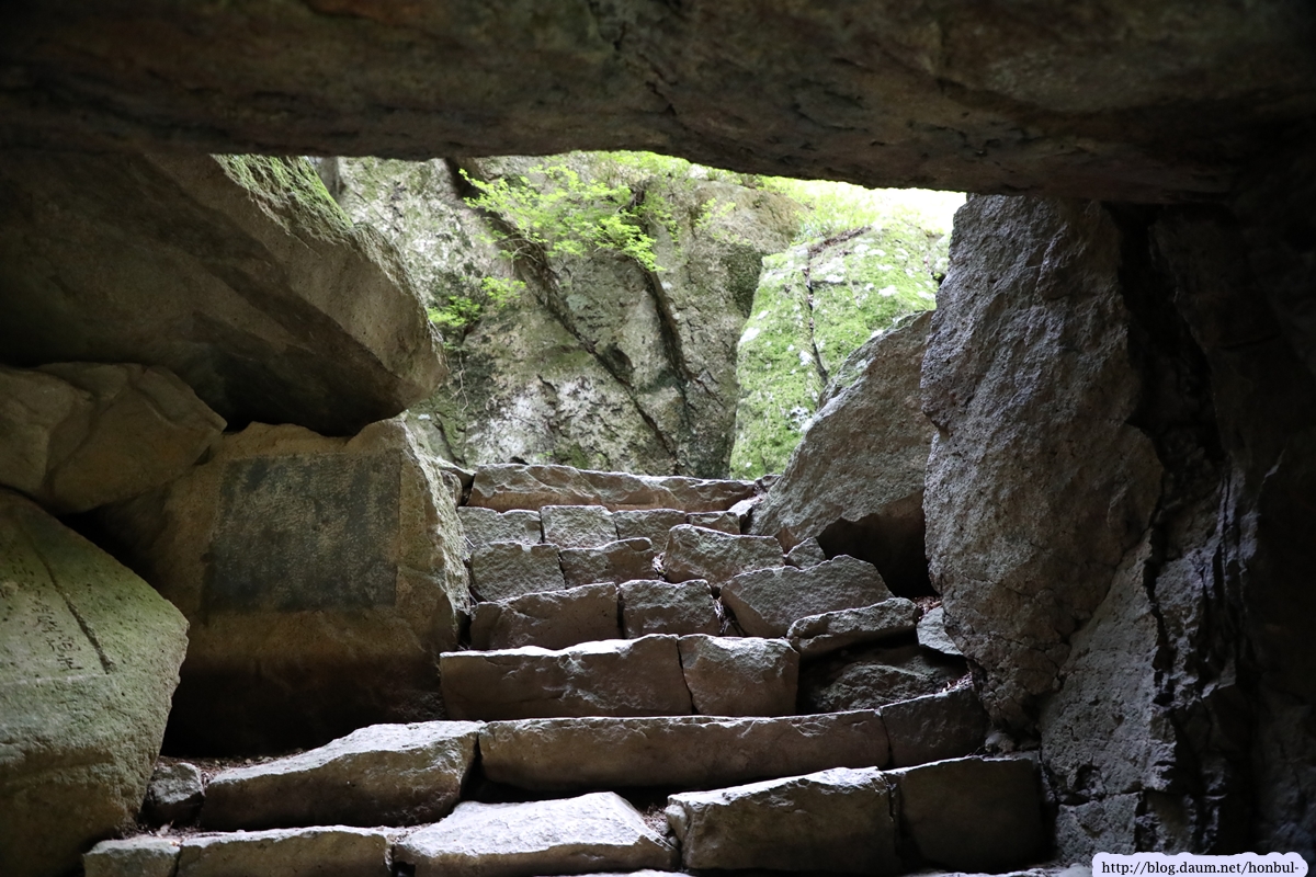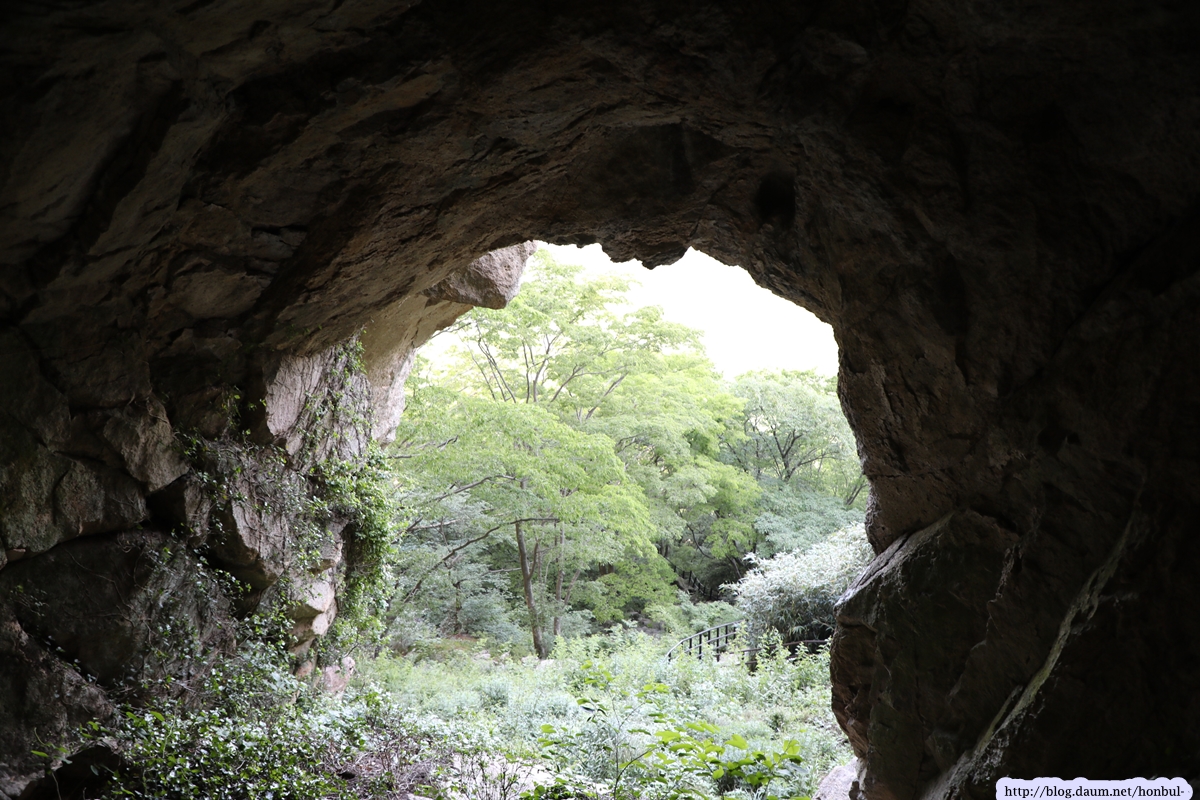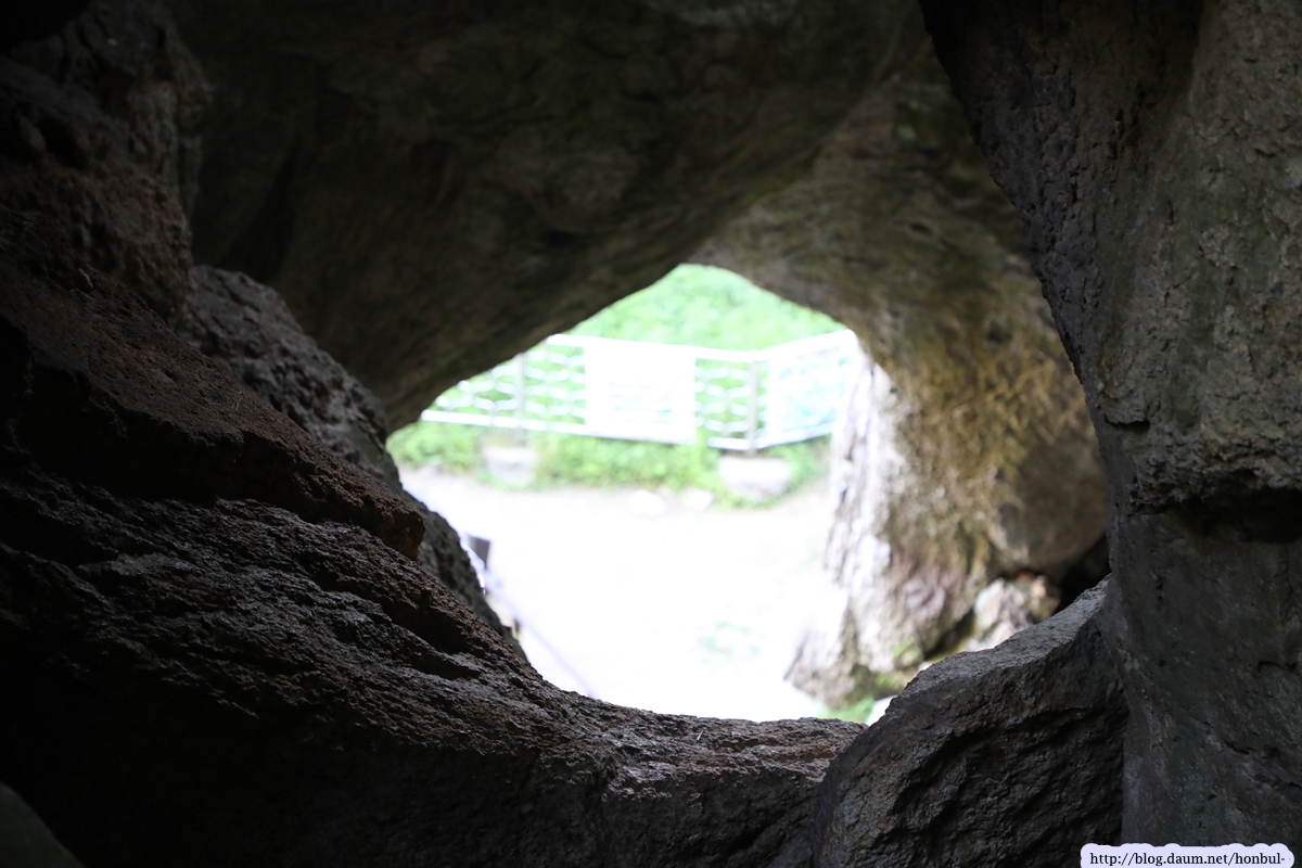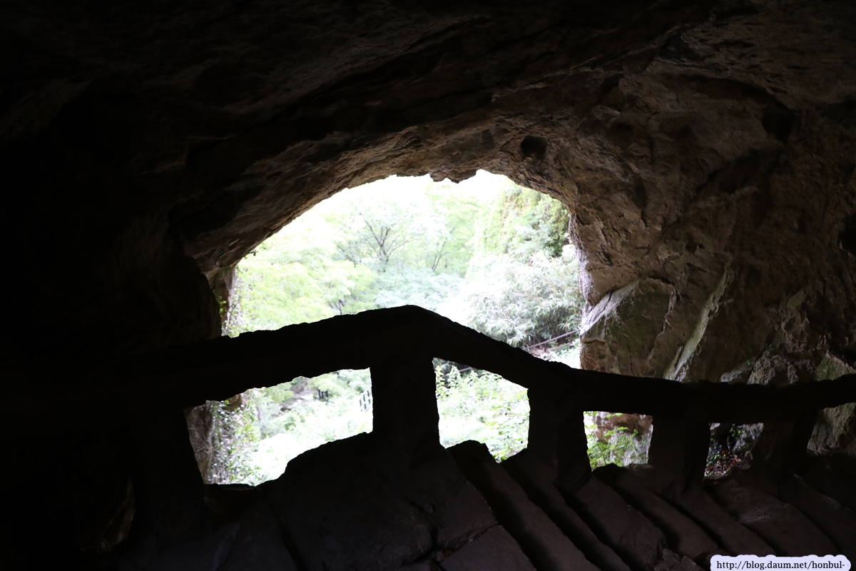 쌍홍문의 우측 굴 밖으로 보이는 장군봉