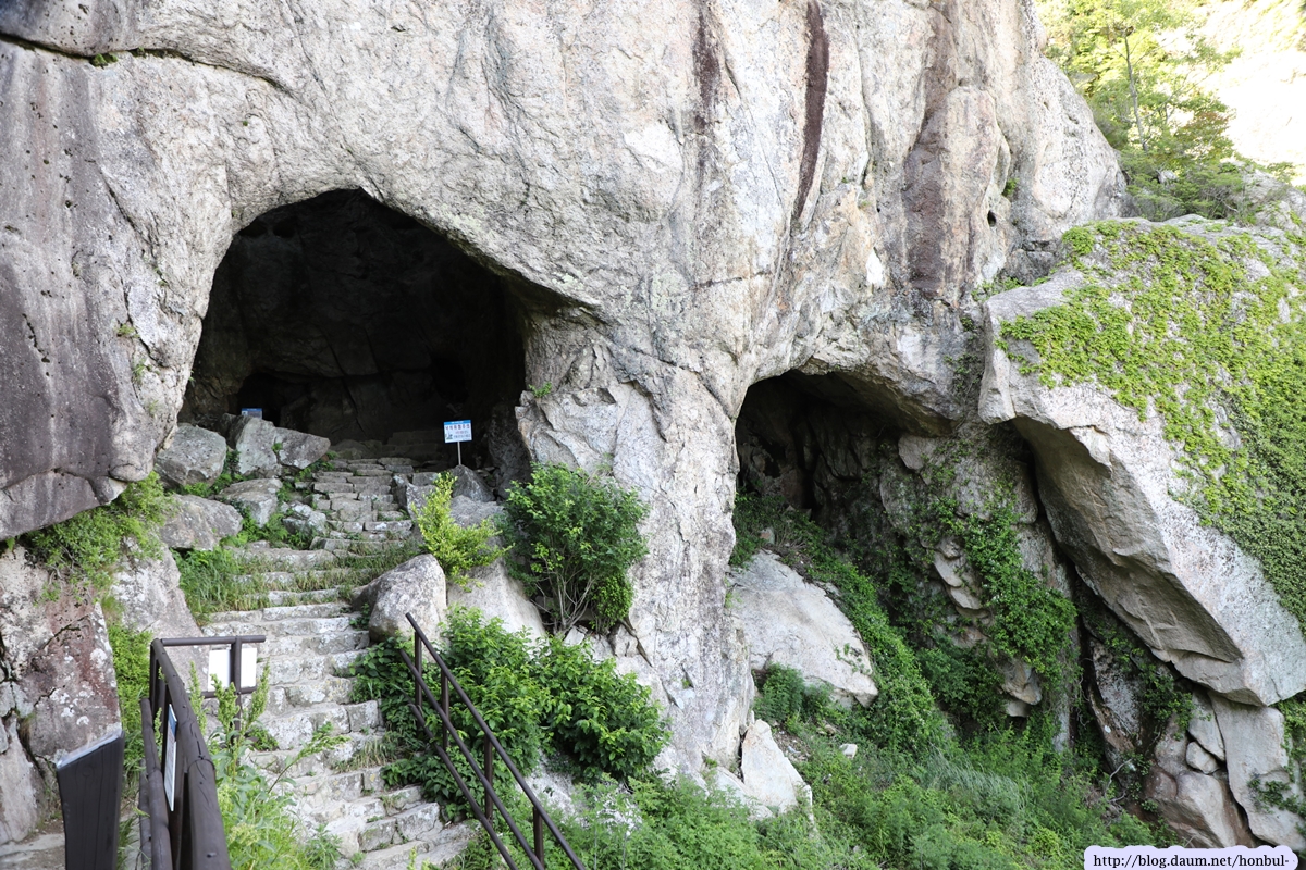 쌍홍문을 만나기 전 여러 개의 크고 작은 굴을 여러 개 볼 수 있다.