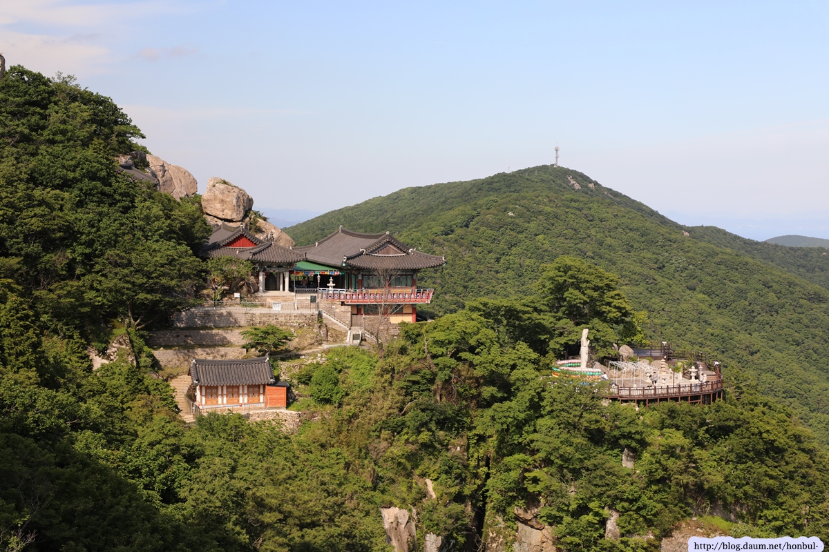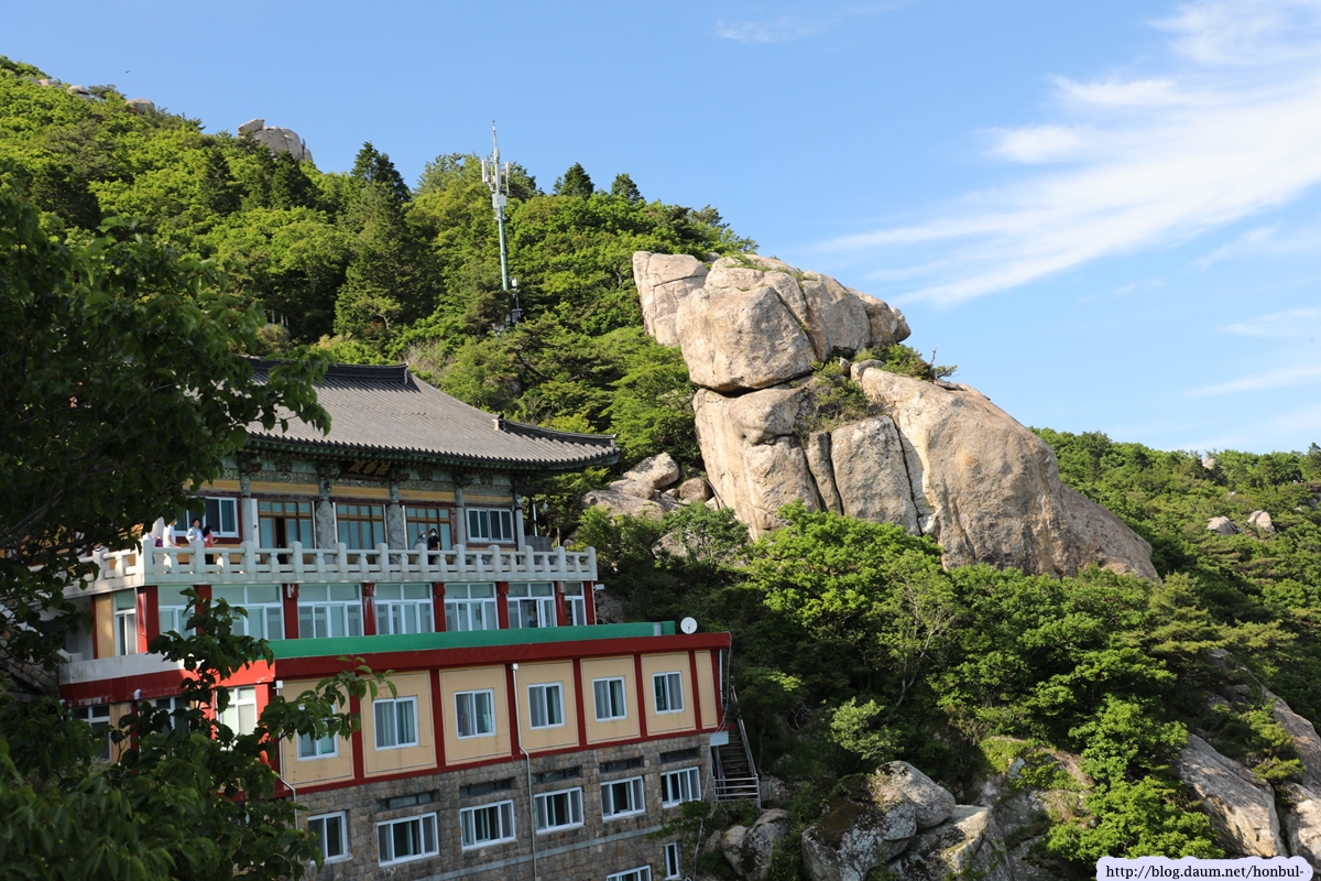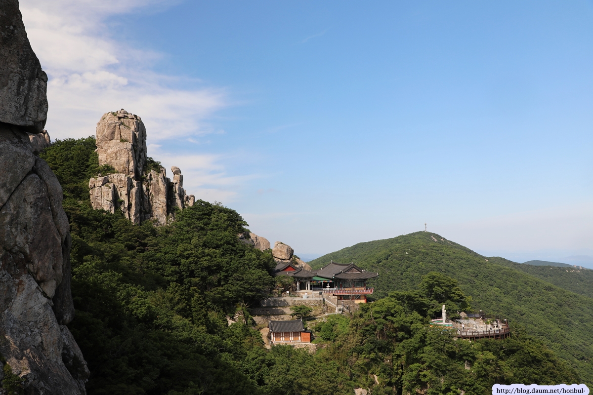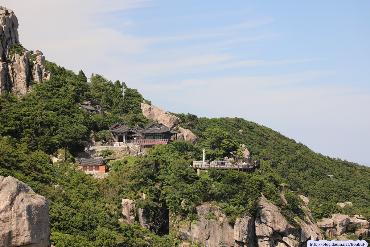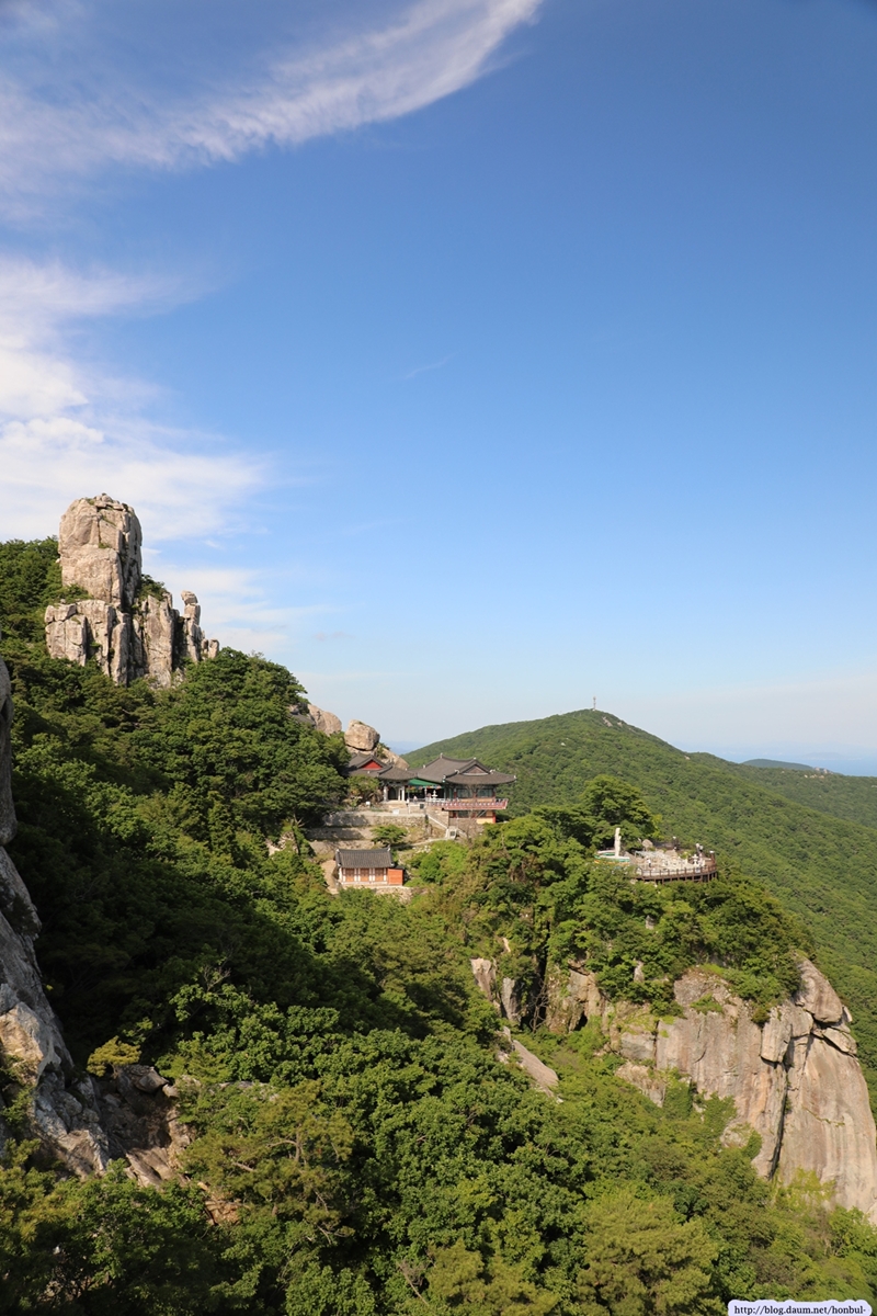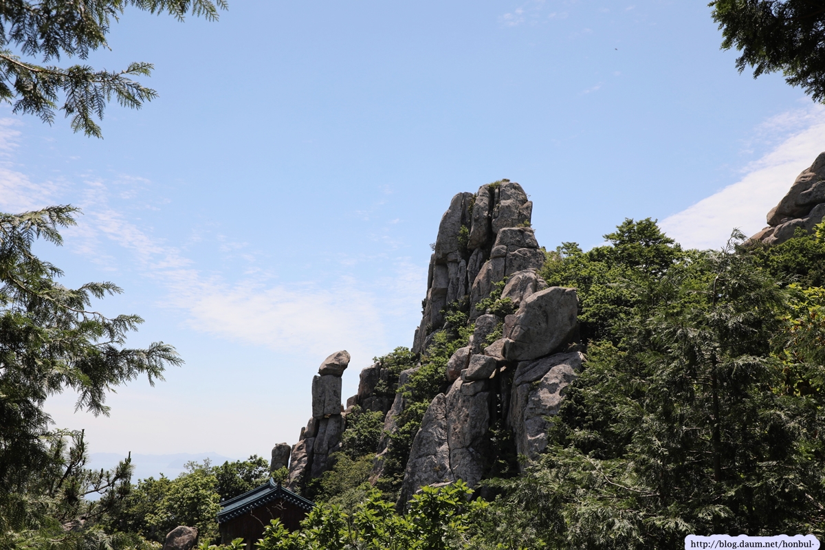 제석봉이 상사암보다 훨씬 가까워 보리암을 더 선명하게 잡을 수 있다.