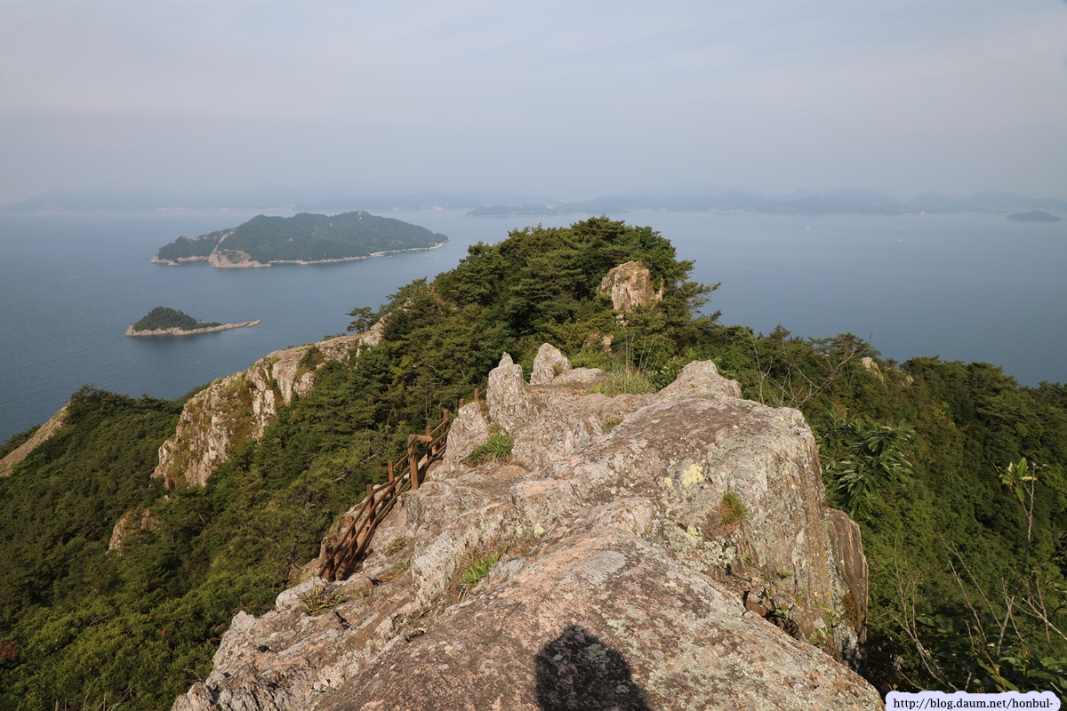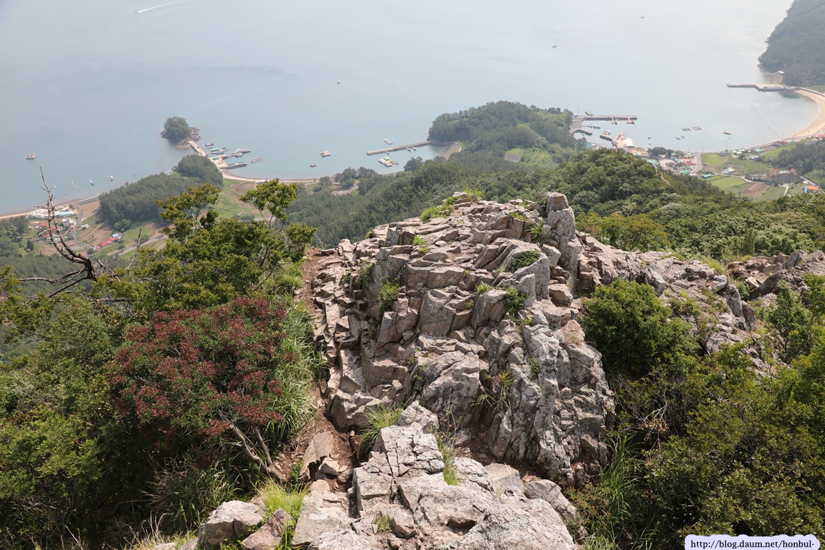 윗 섬에는 육지의 산에 비해 높이나 규모는 작지만 산행코스나 암릉 미에 있어서는 전혀 뒤떨어지지 않는 지리망산,