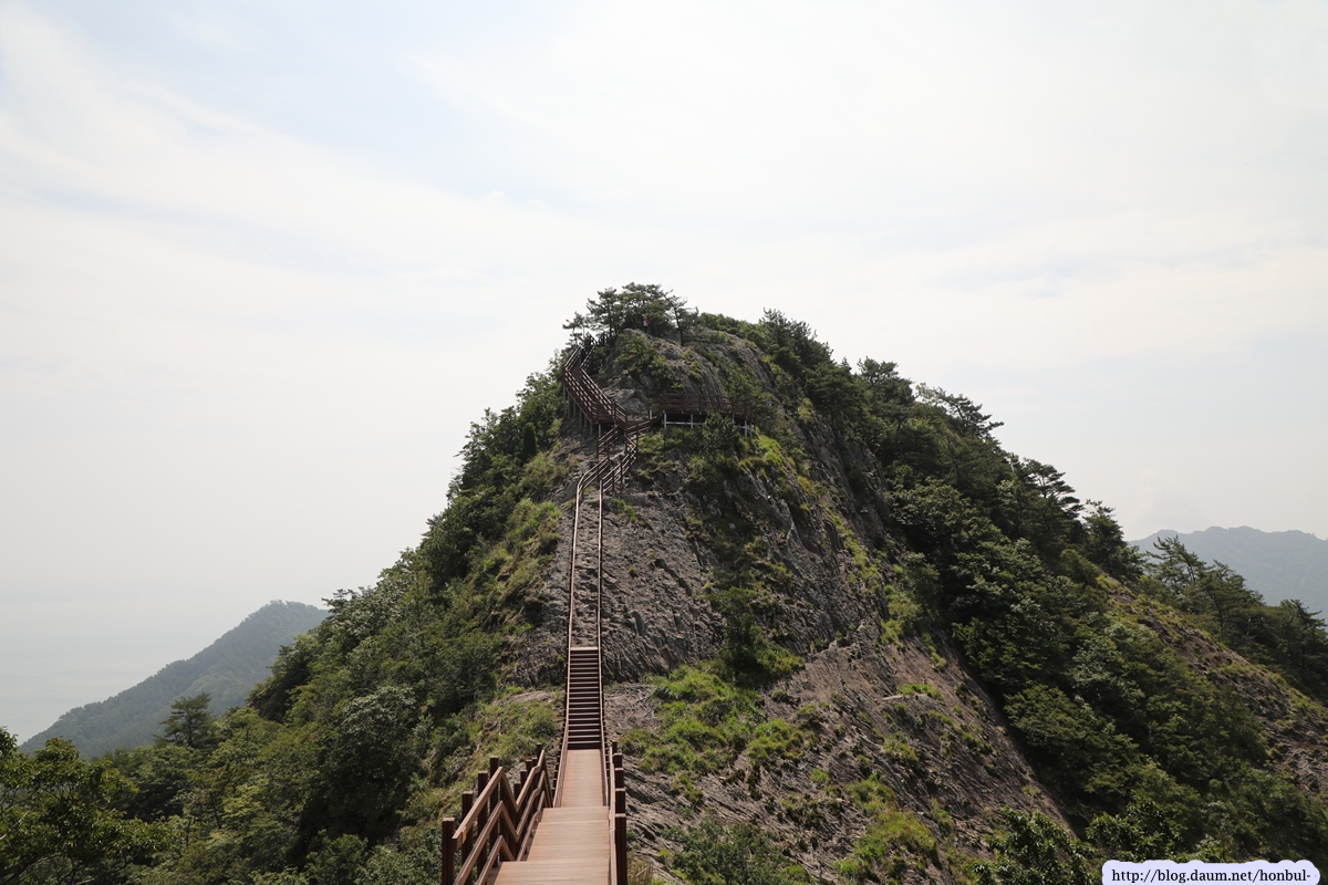 옥녀봉만 밟으면 이 계단을 따라 사량면사무소 소재지나 각자 원하는 방향으로 가면 산행은 끝난다.