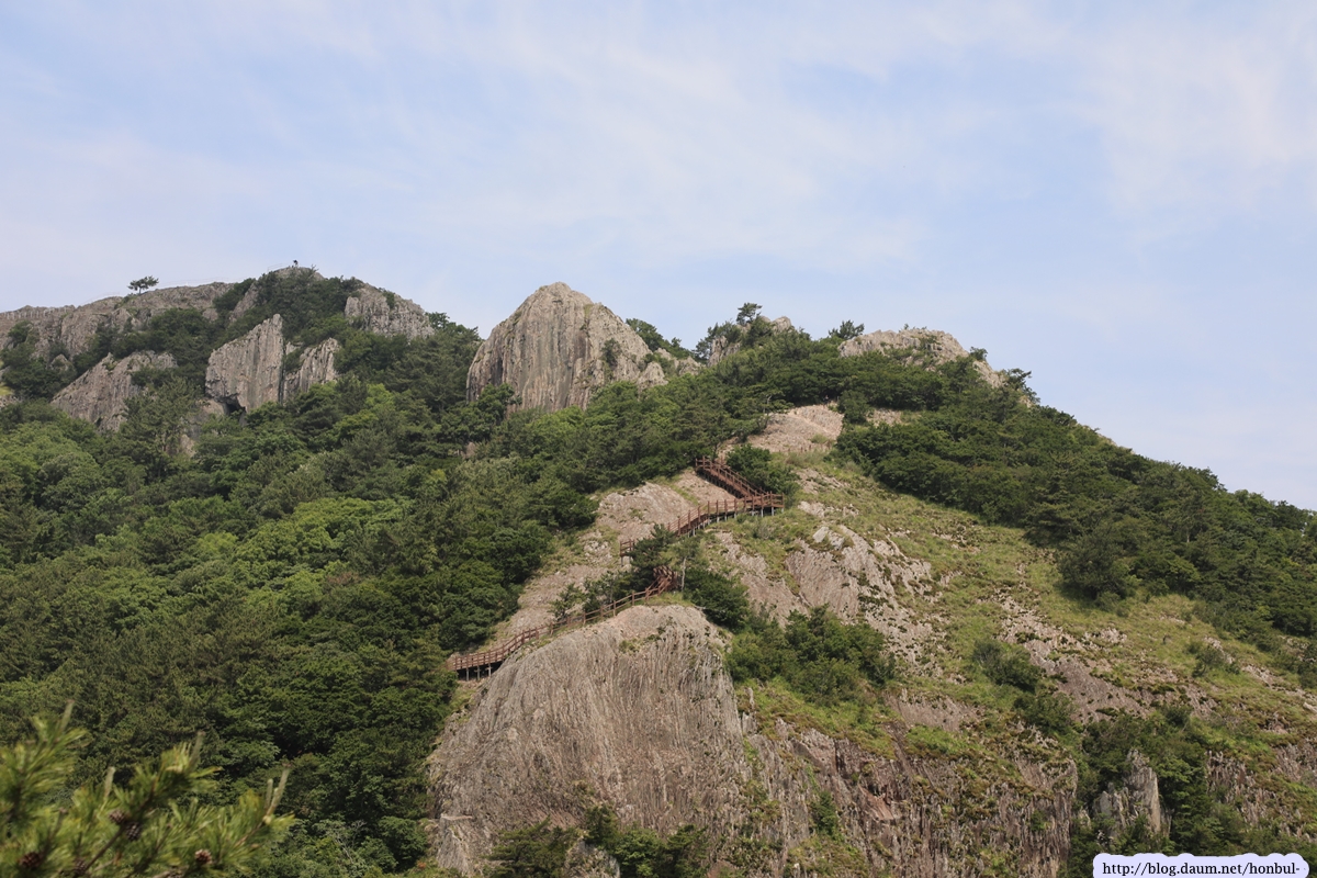 오랜 세월 동안 비바람에 깎인 바위산이라 당당한 위용을 뽐내고 있다.