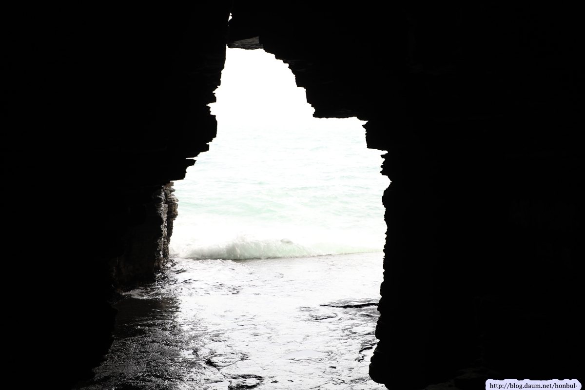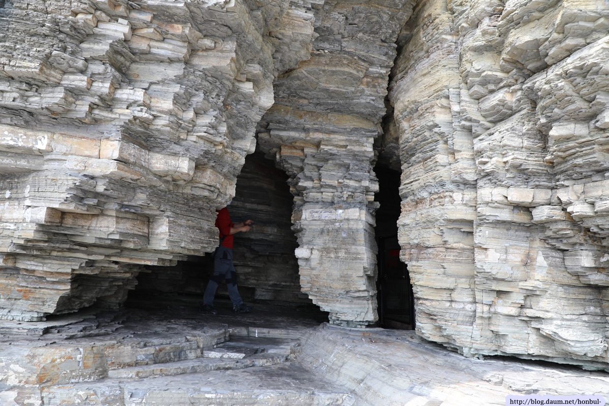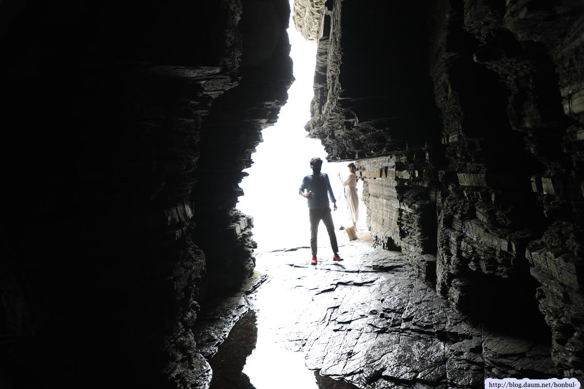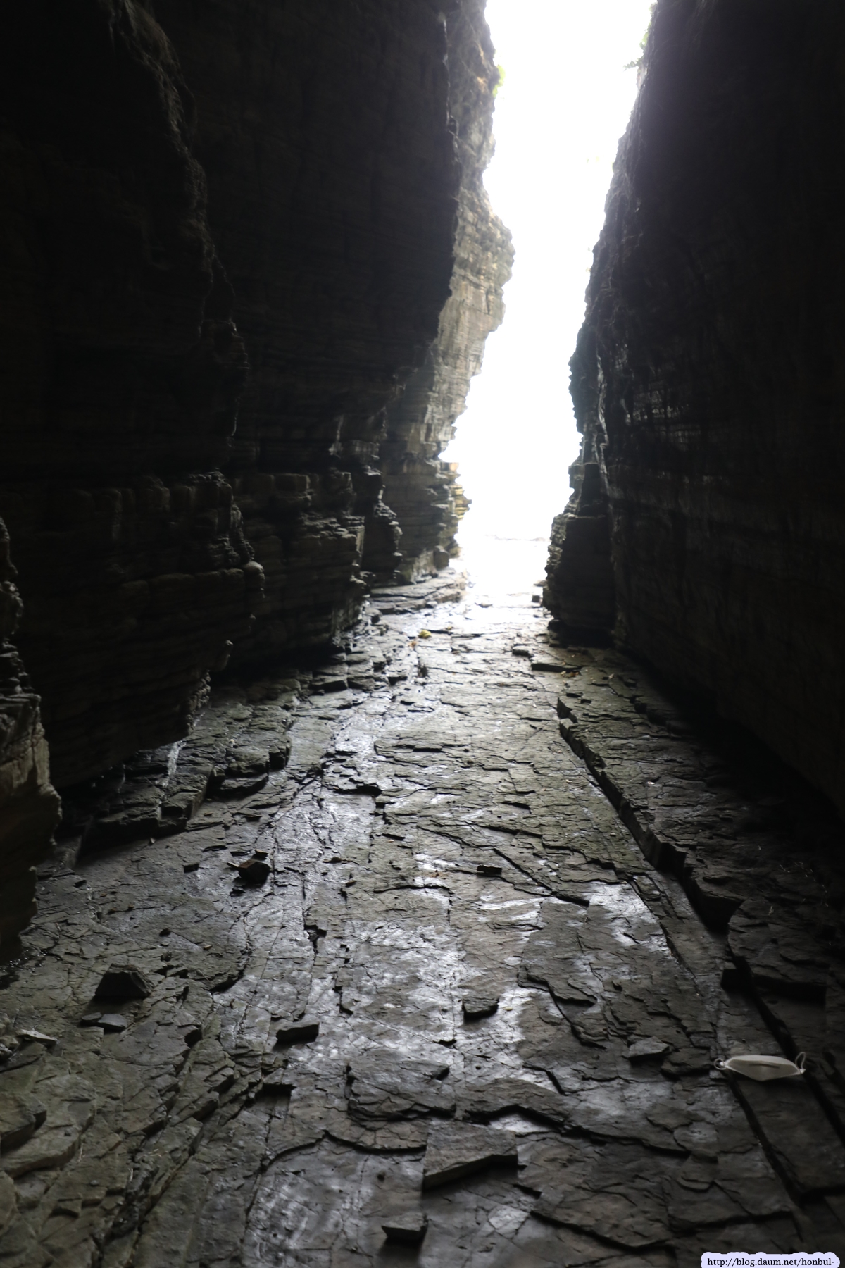 공룡들의 발자국을 따라 바윗길을 돌아가면 동굴 입구가 보인다.