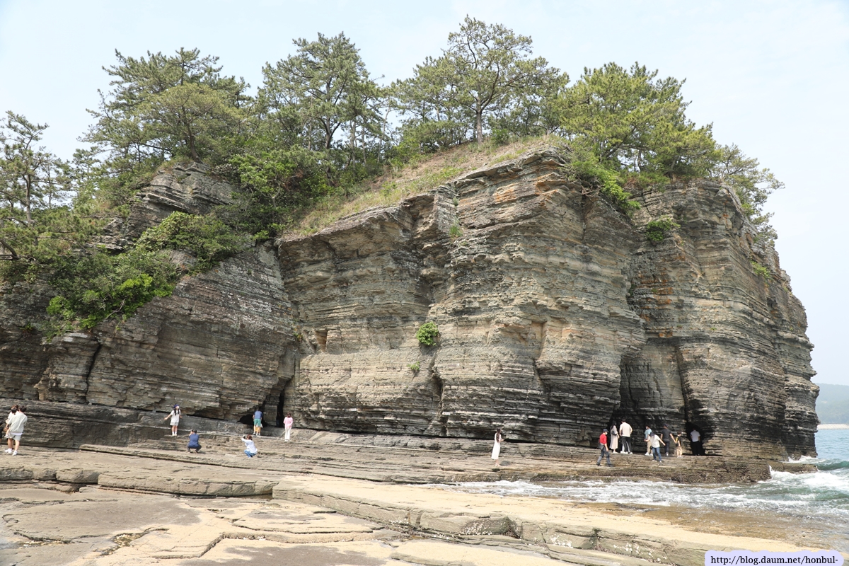 상족암은 바다에 접한 해식애 지형으로 바람과 파도가 만들어 낸 자연의 걸작이다.