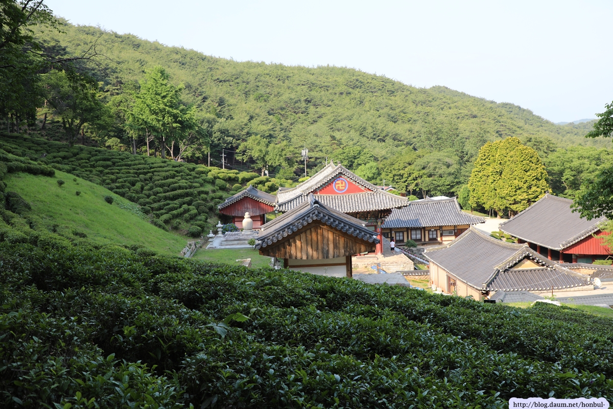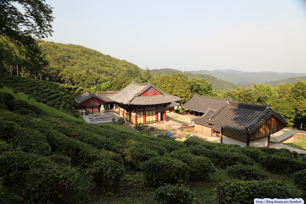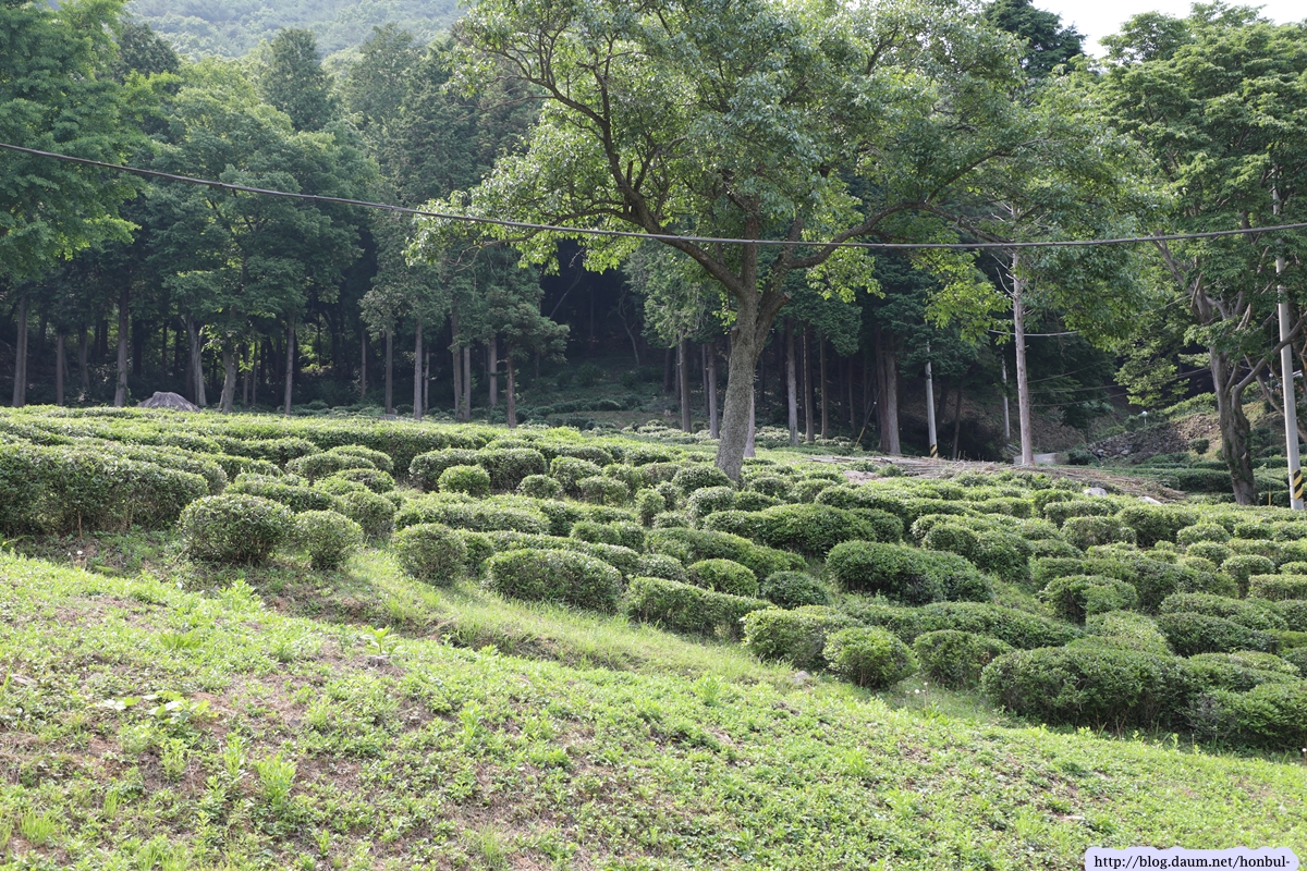 다솔사 차밭은 막 땅거미가 지고 다솔사도 이제 서서히 그늘 속으로 들어갈 차례다.