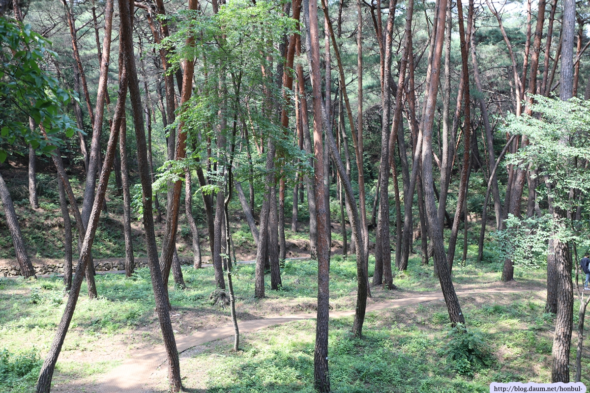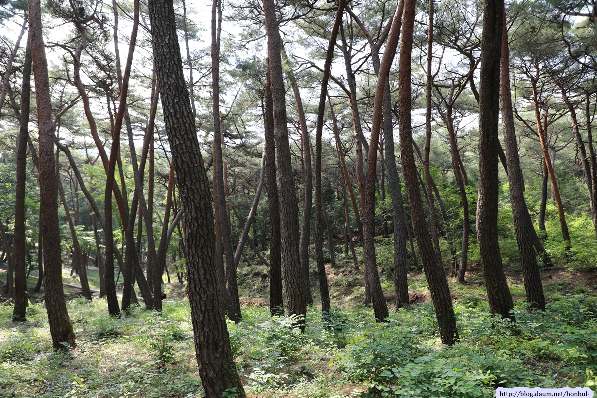 양쪽 차도 사이에 있는 오솔길은 길쭉길쭉한 소나무 숲이라 걷는 내내 상쾌한 기분이 든다.