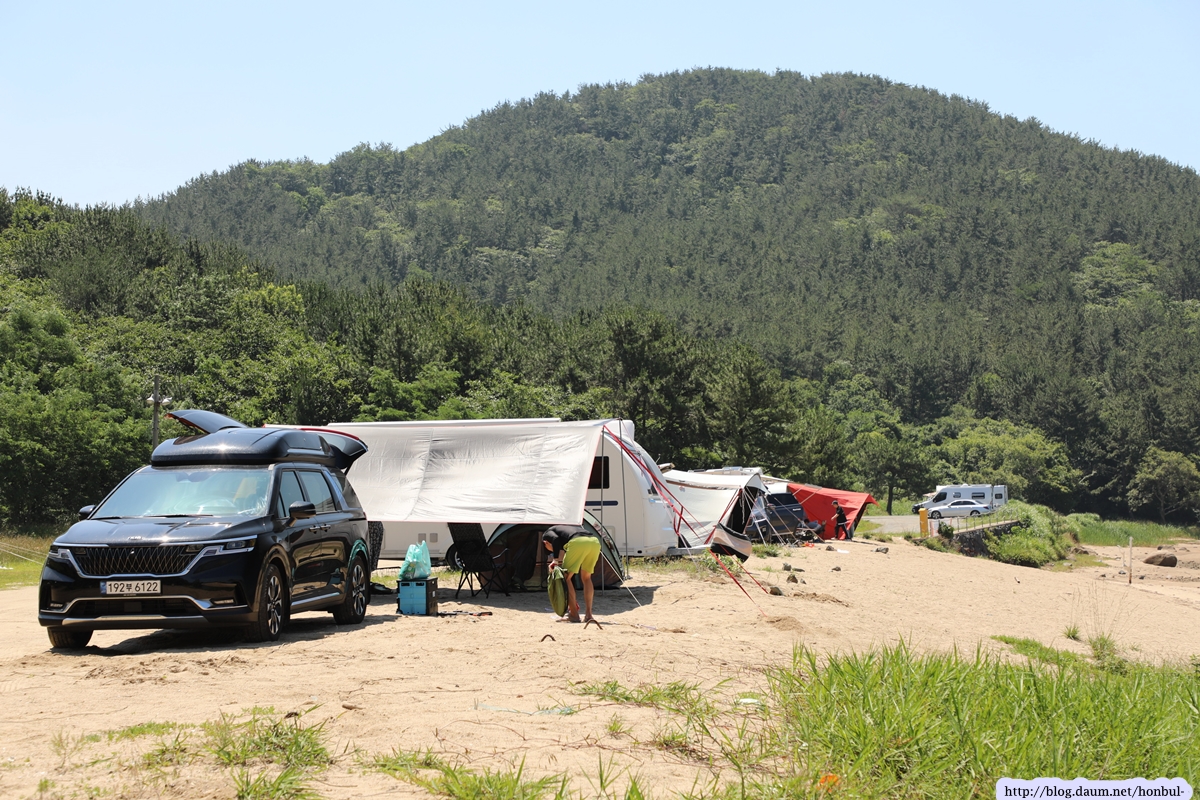 해변가로 나무 그늘이 없어 텐트나 그늘막 지참이 필수인 곳이다.