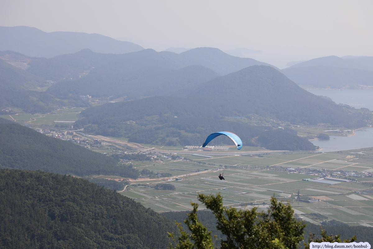 이곳에 패러글라이더 활공장 있어 임도를 이용해 이곳까지 차량이 올라올 수 있다.