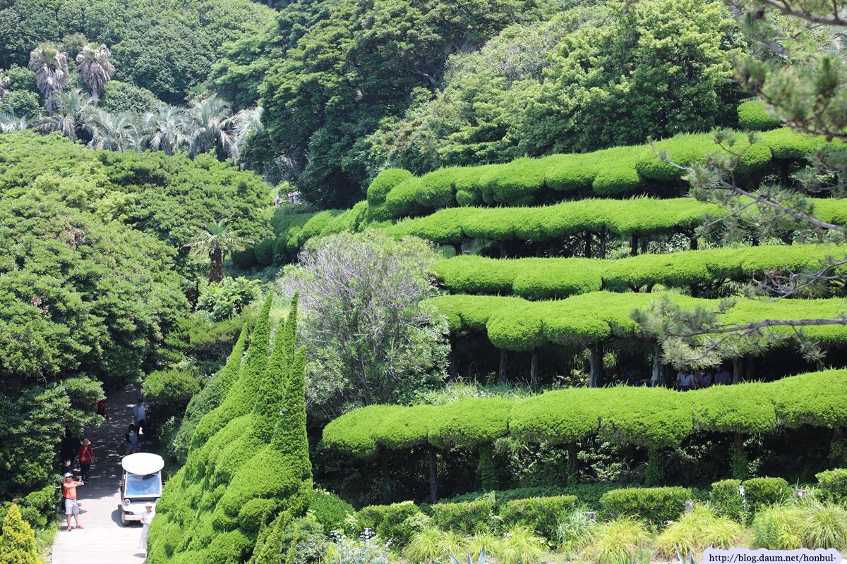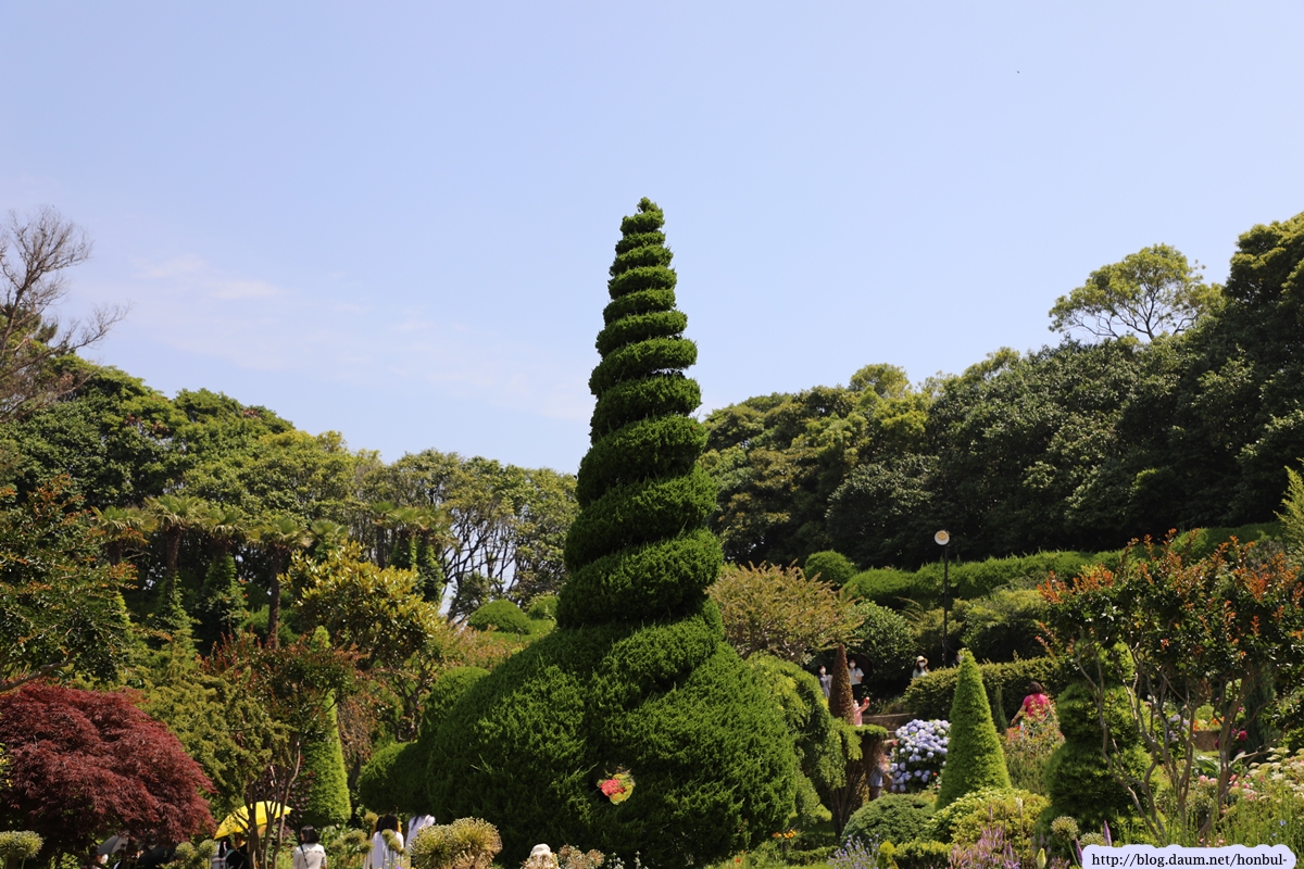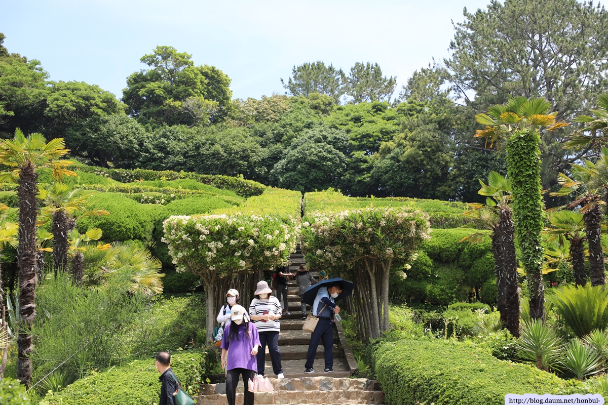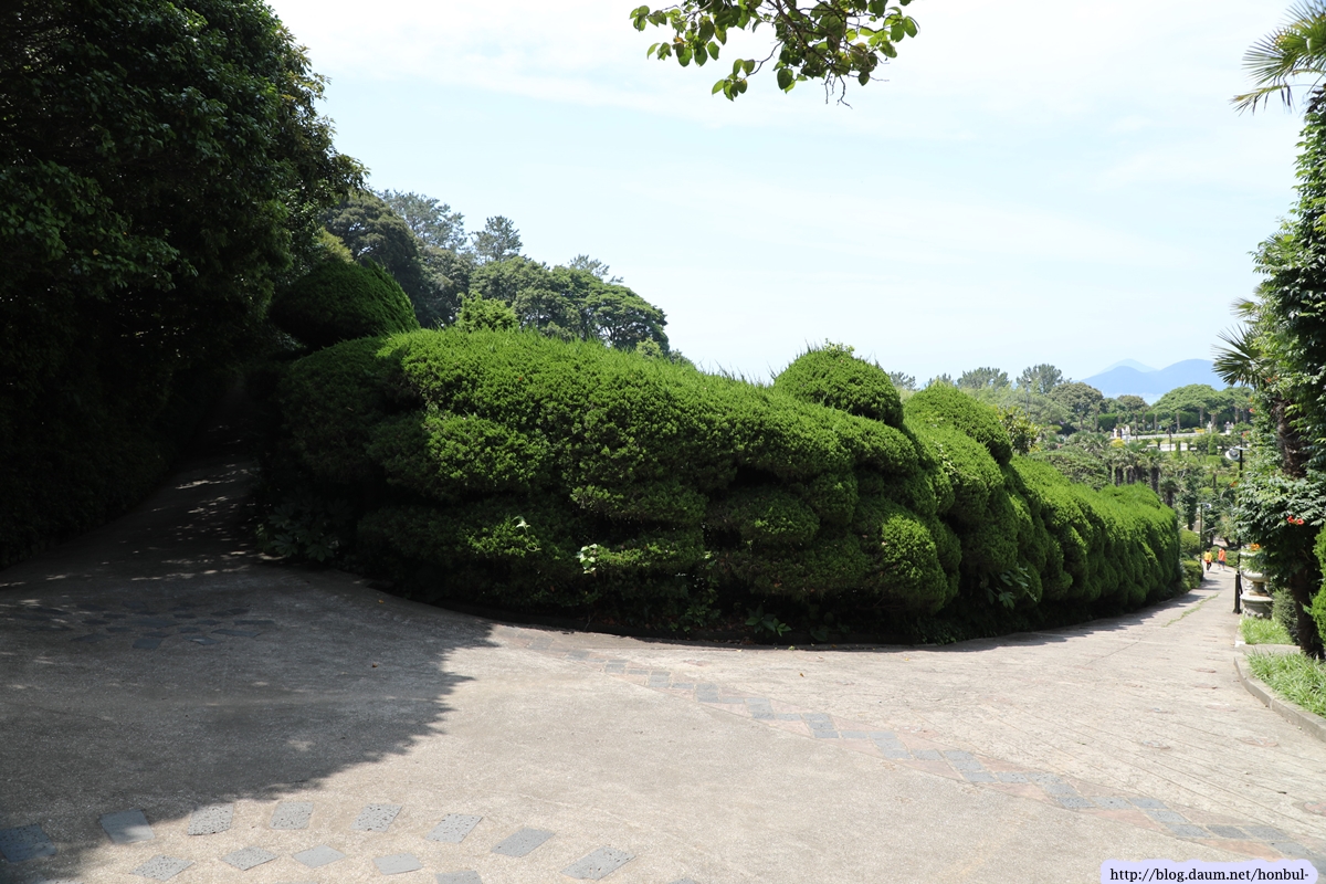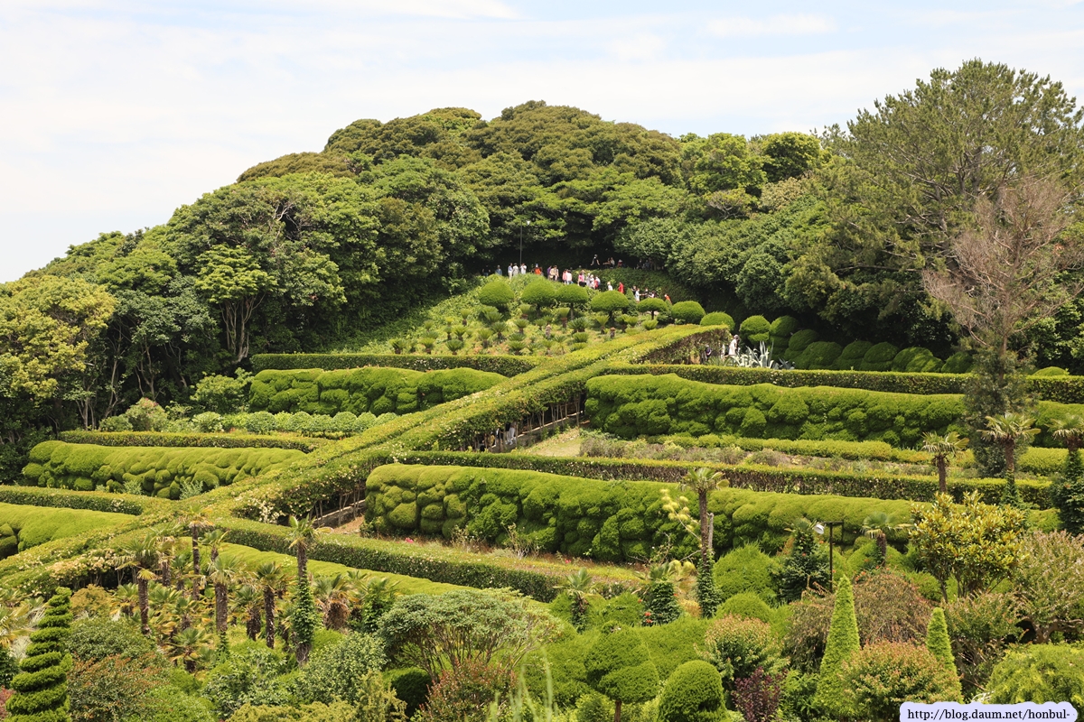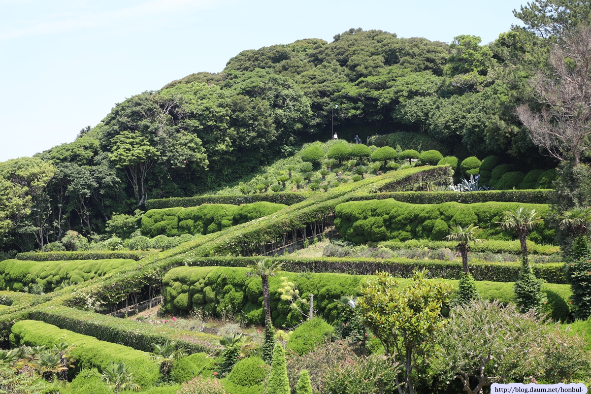 아왜나무 8천 그루와 여러 가지 모양으로 잘 다듬어진 정원수들이 함께 어우러져