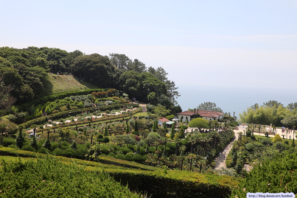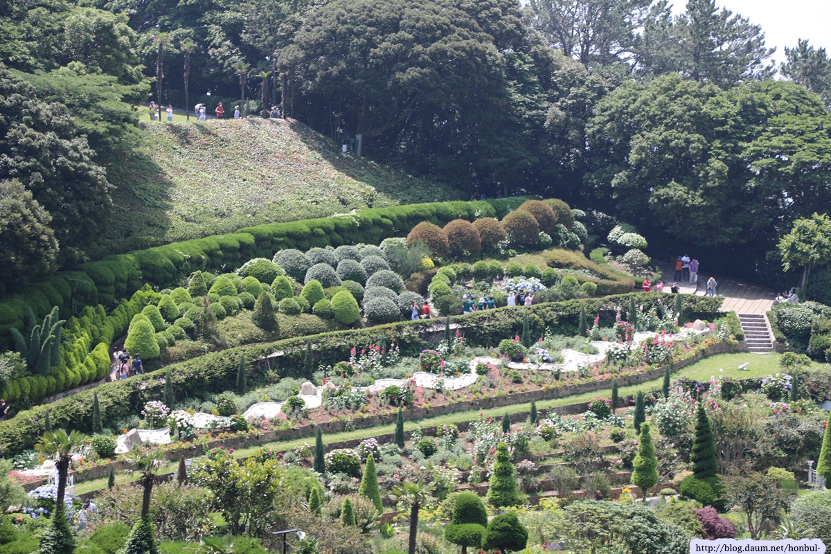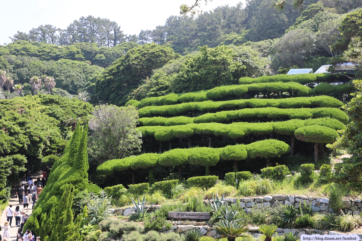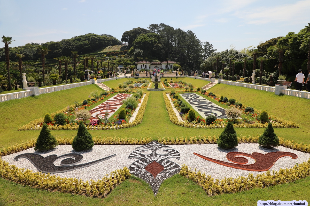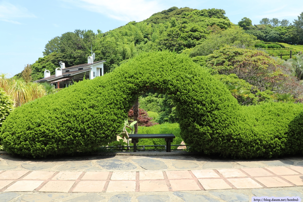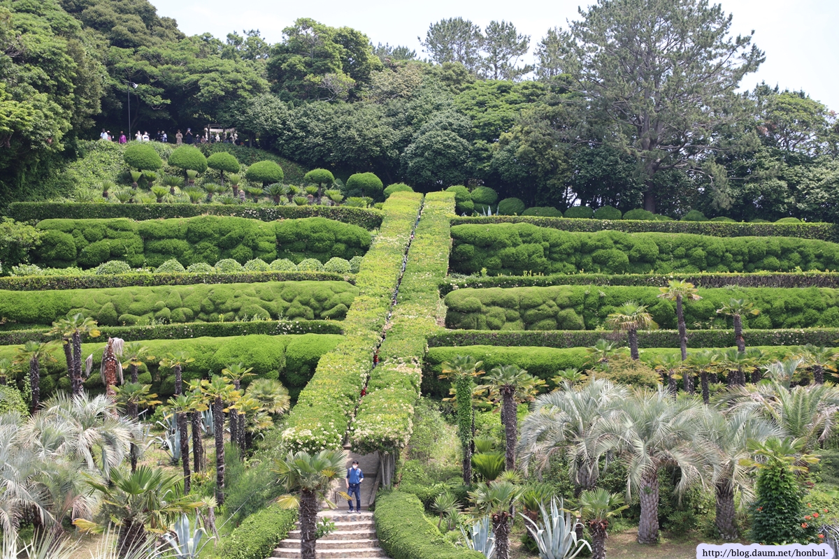 아왜나무 8천 그루와 여러 가지 모양으로 잘 다듬어진 정원수들이 함께 어우러져