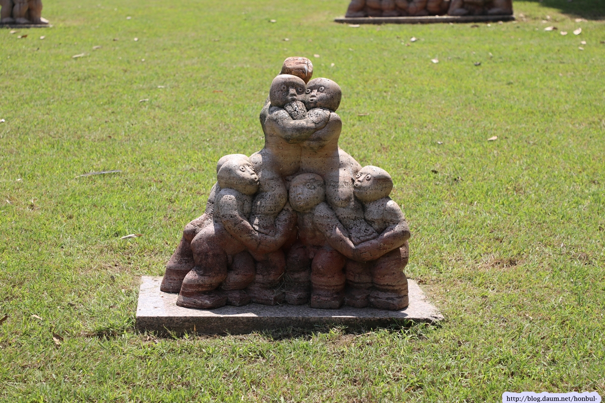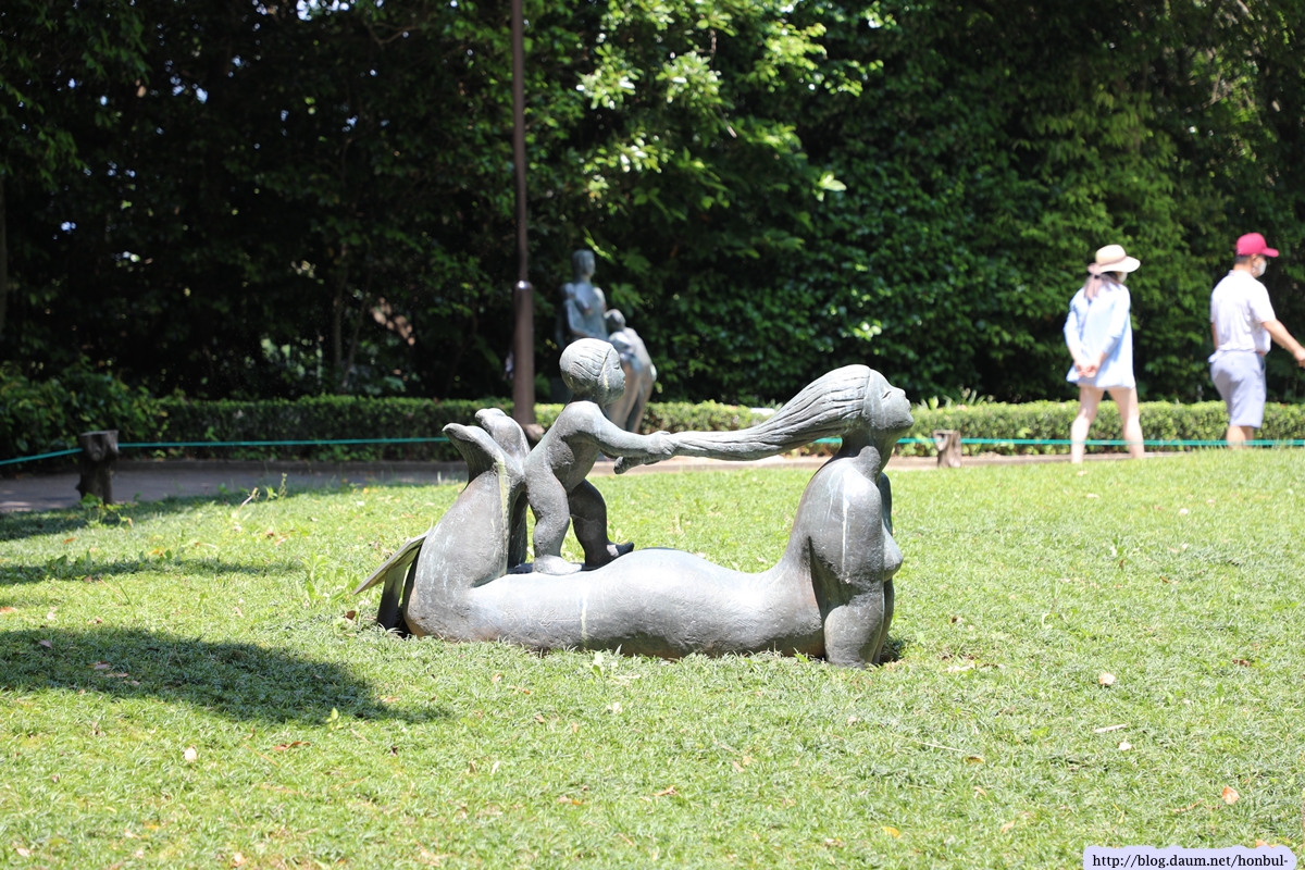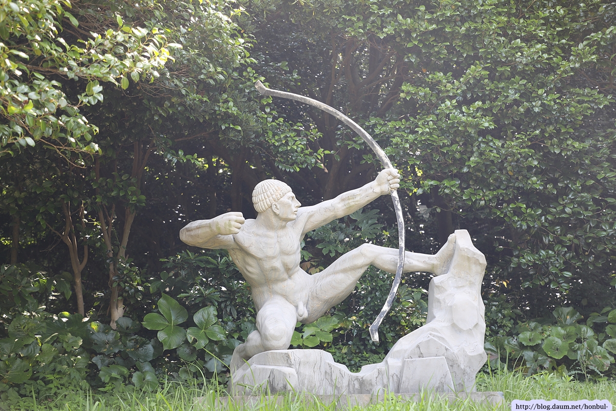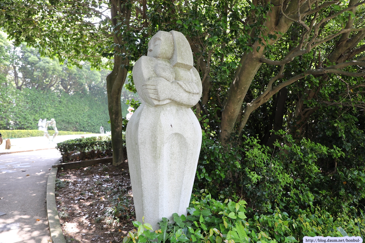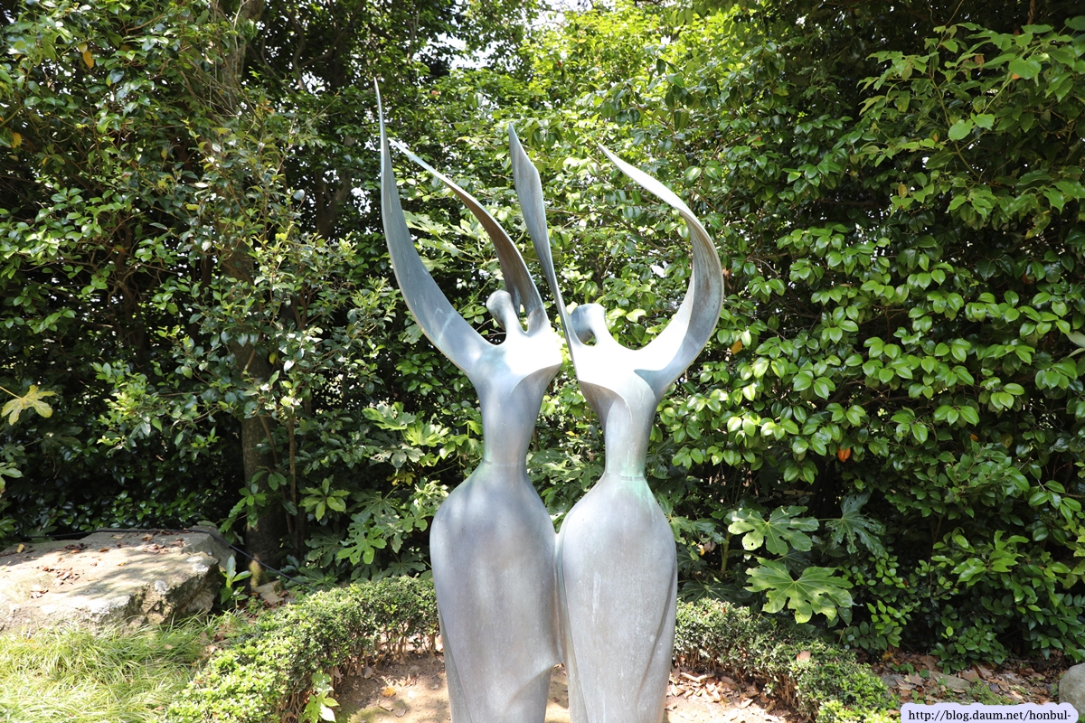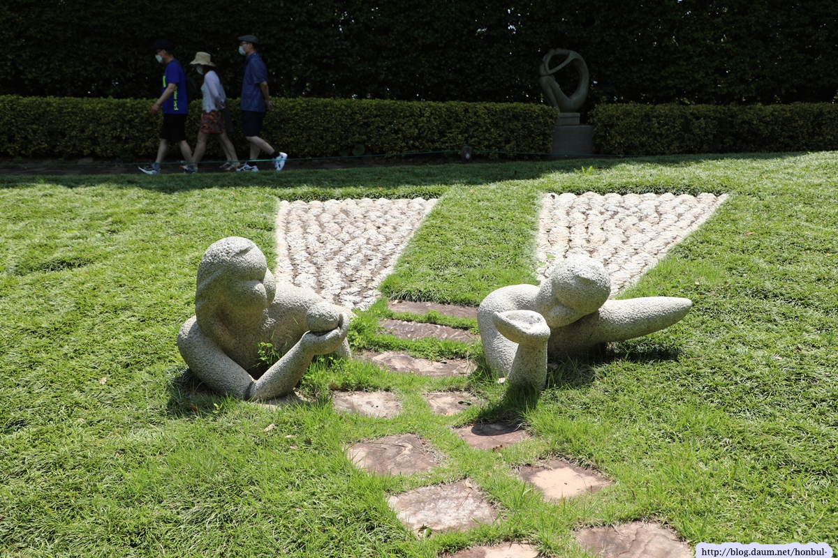 정점에 위치한 놀이조각공원을 돌아 조금 내려오면 양쪽 오솔길을 따라 국내 유명 조각가들의 작품들을